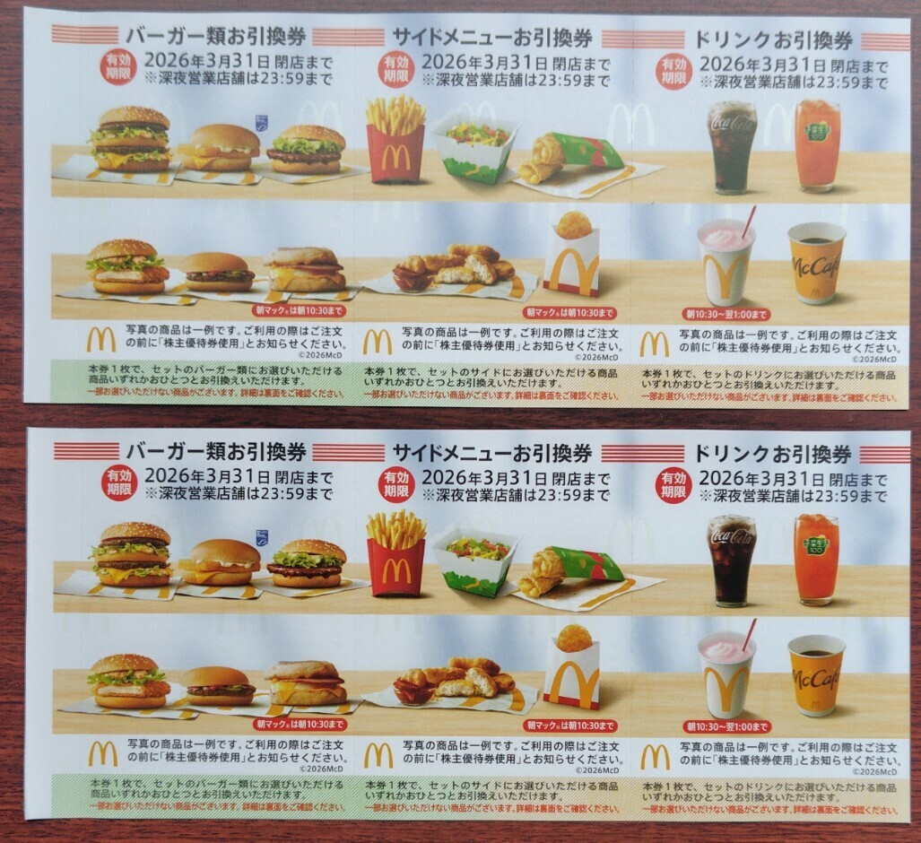 ★落札金額は、株主優待券2枚セット(バーガー類お引換券2枚・サイドメニューお引換券2枚・ドリンクお引換券2枚)です。
