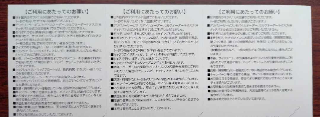 ★マクドナルドの株主優待券です。
