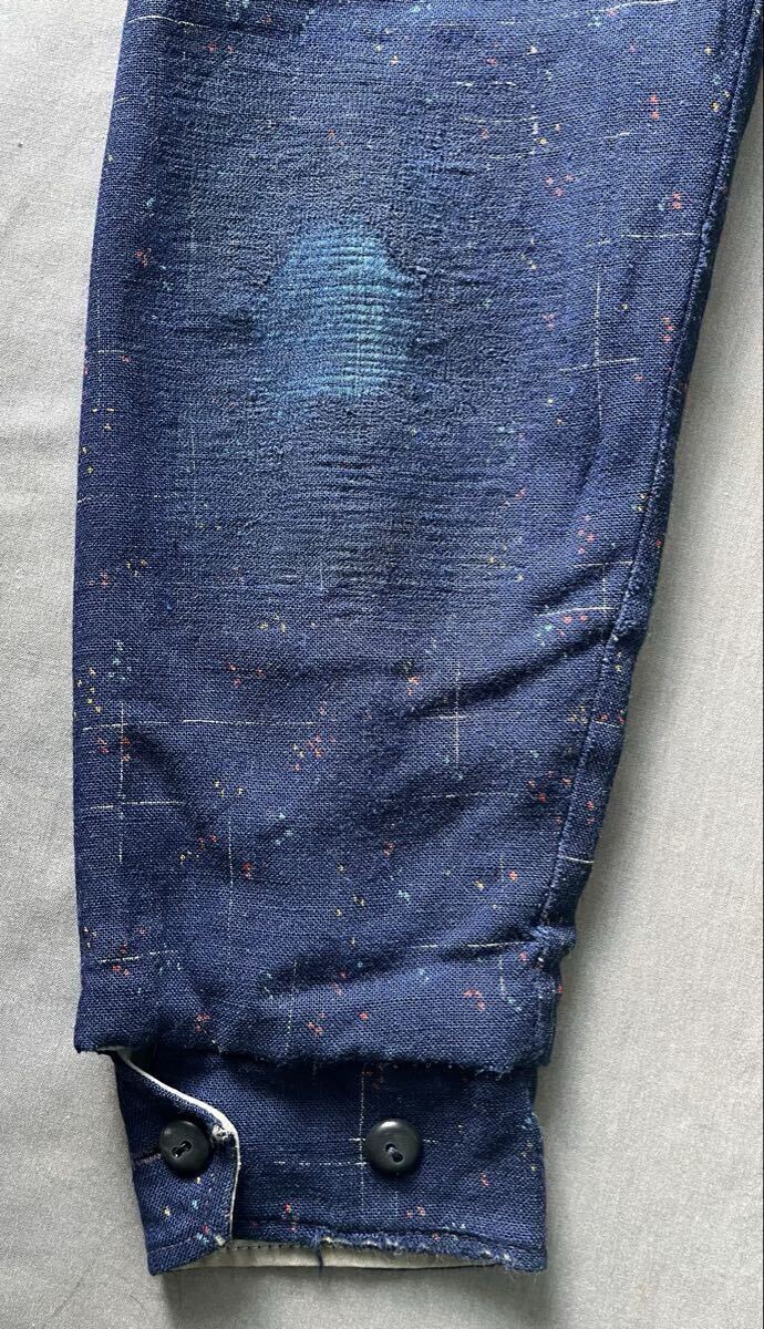 全体的に状態は悪いですが、大きいダメージの部分(A面の両肘部分)はしっかりタタキでリペアされているのでまだまだ着用頂けるかと。