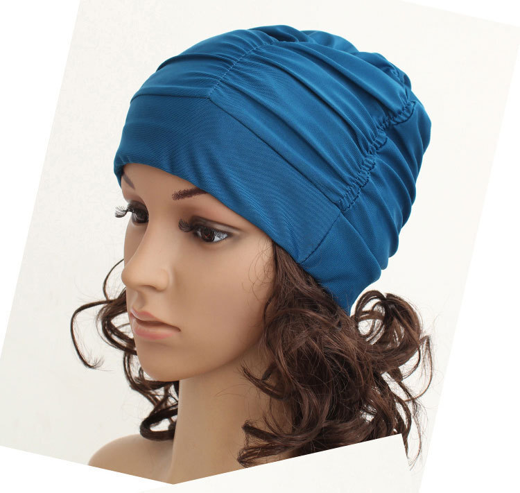 【 ジム や プール に】 お洒落 な シャーリング スイムキャップ フリーサイズ ブルー BU♪水泳帽 夏 海 水泳帽子