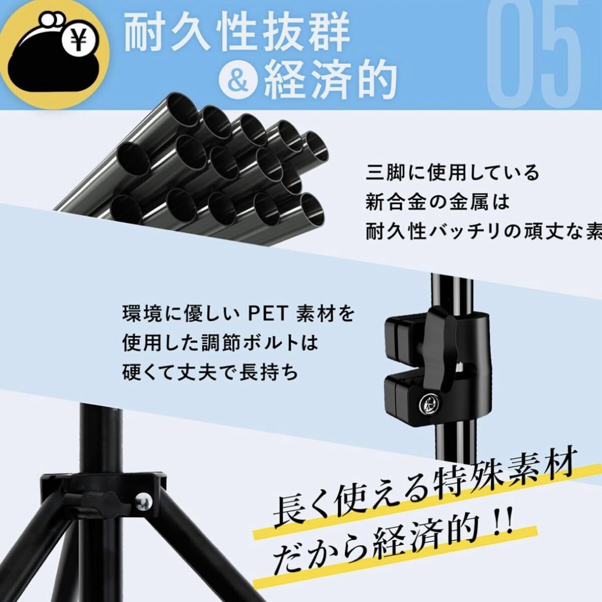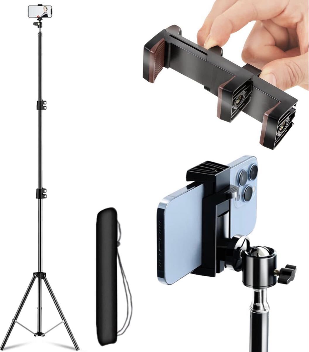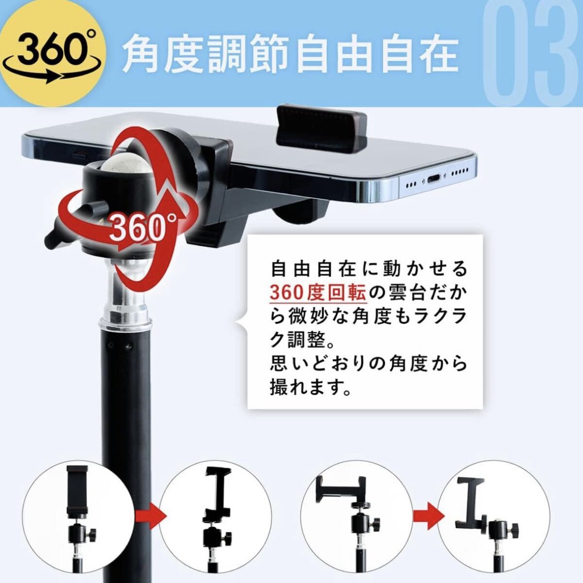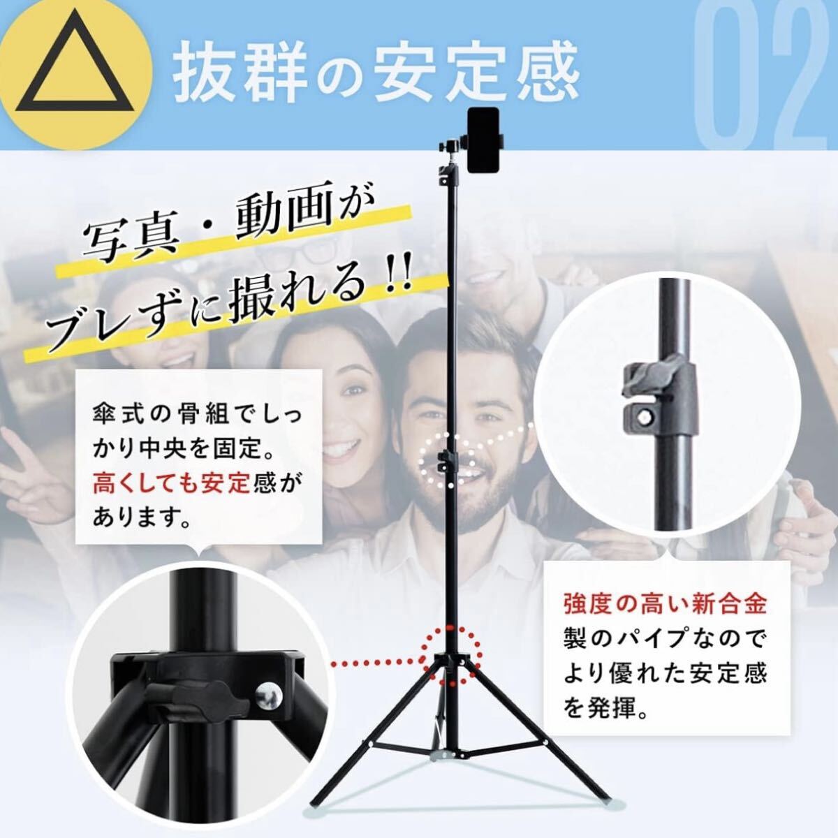 最大2m以上高く伸びるロングタイプのスマホ三脚スタンドです。