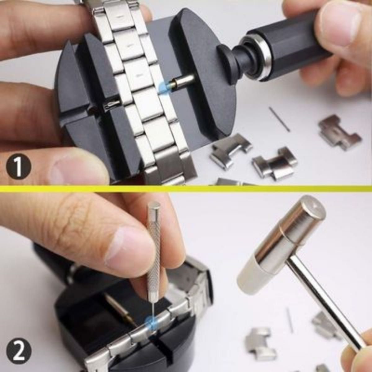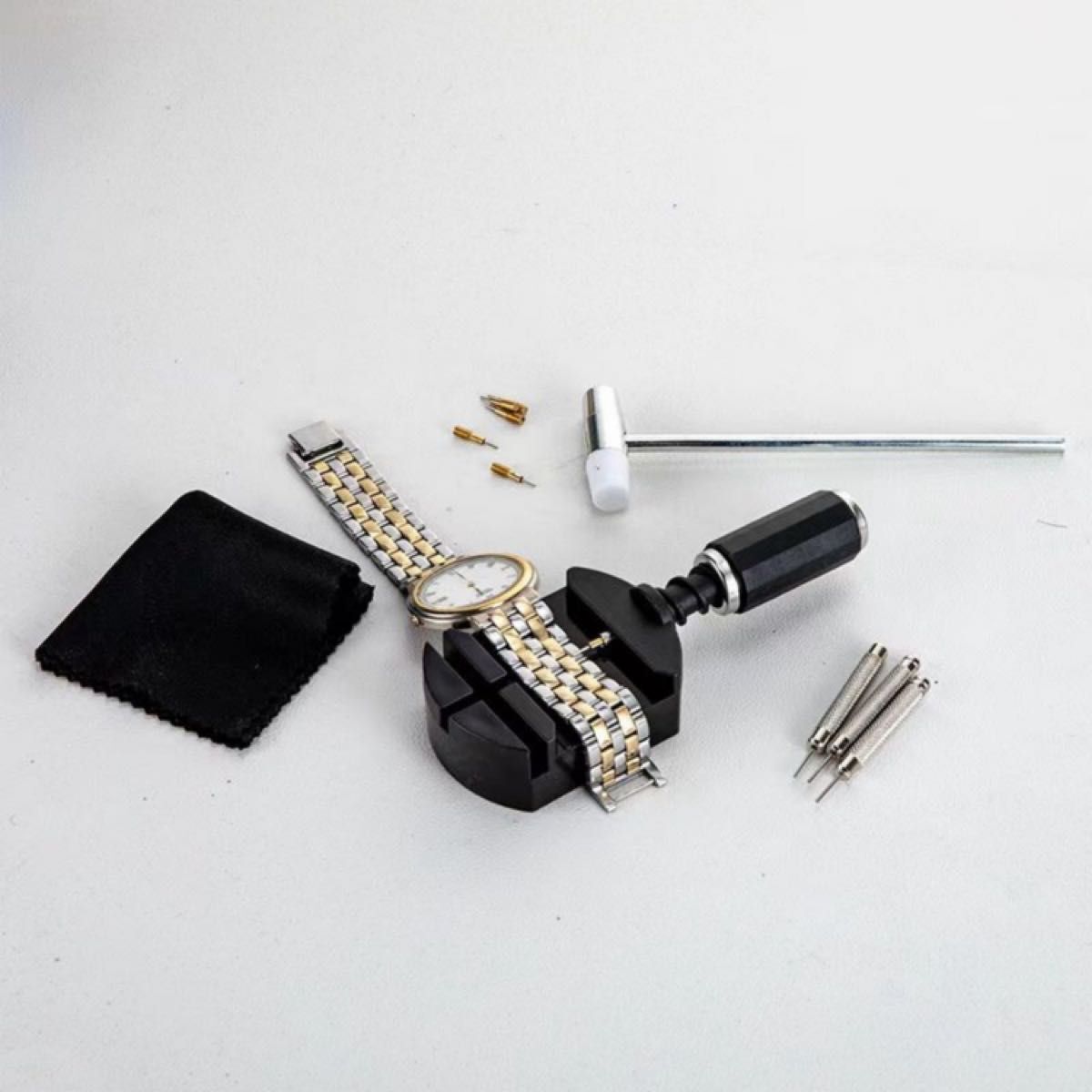 ご自宅で手軽に、そして正確に腕時計のメタルバンドの長さを調整できます。ピン方式のメタルバンドのコマ外しに特化した工具セットです。