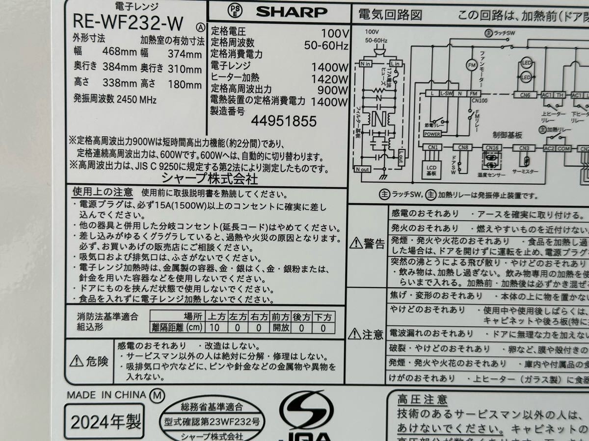 こちらの商品は【美品】SHARP シャープ PLAINLY★RE-WF232-W★スチームオーブンレンジ 2024年製 / 23L フラットタイプ 過熱水蒸気 900W /m 【稼働品】の出品です。