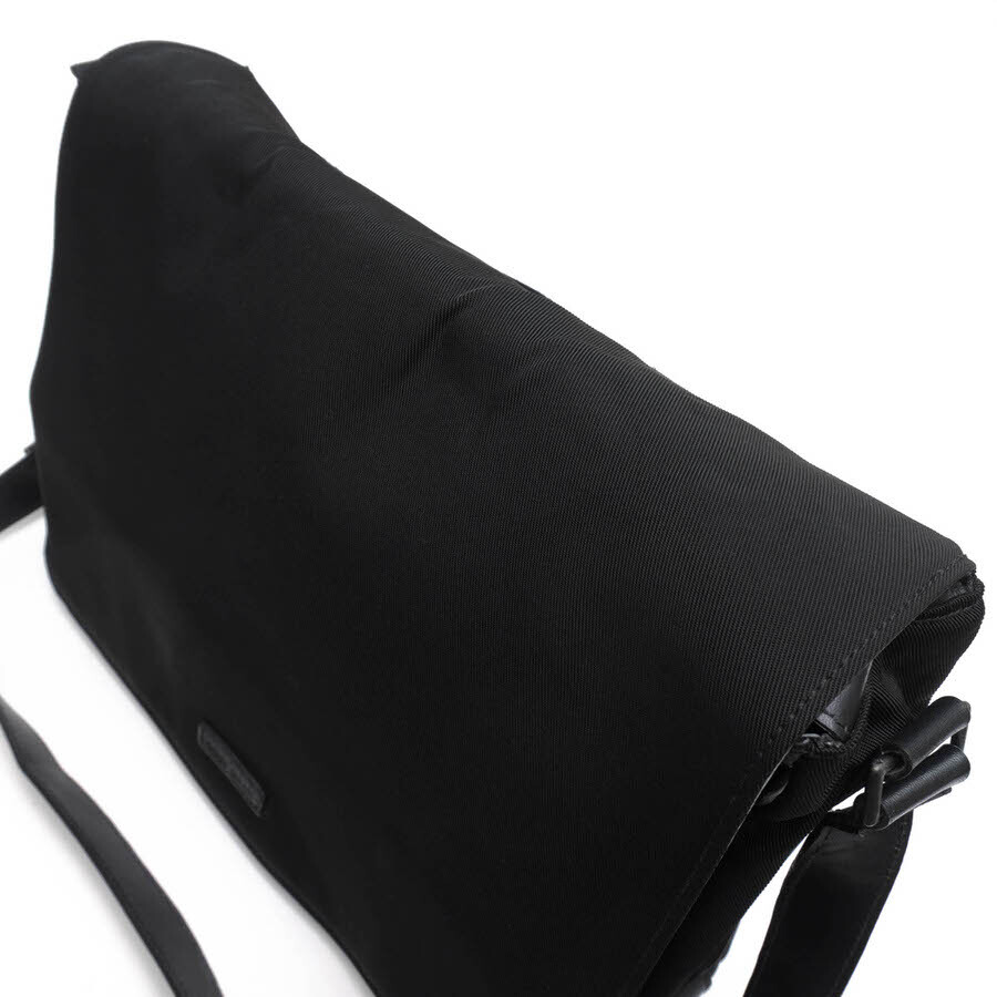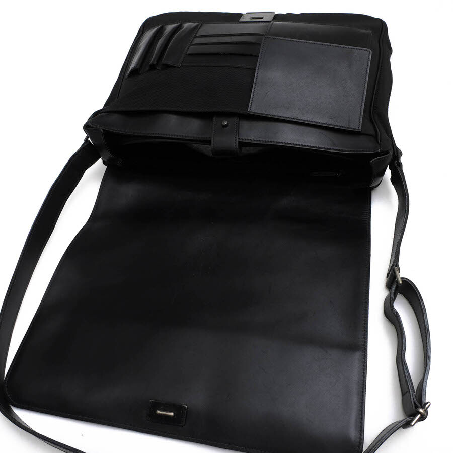 | イタリア製の機能的なメッセンジャーバッグ。メイン素材には耐久性の高いナイロンを採用し、細部には高品質の牛革を使用。内装はアルマーニ独自の総柄で、上品な印象を与えます。バッグ内部は二つのメインコンパートメントに加え、ファスナーポケットが内外に複数配置されており、小物の整理も容易です。ストラップは長さ調節が可能で、体型や用途に合わせて快適に使用できます。 |