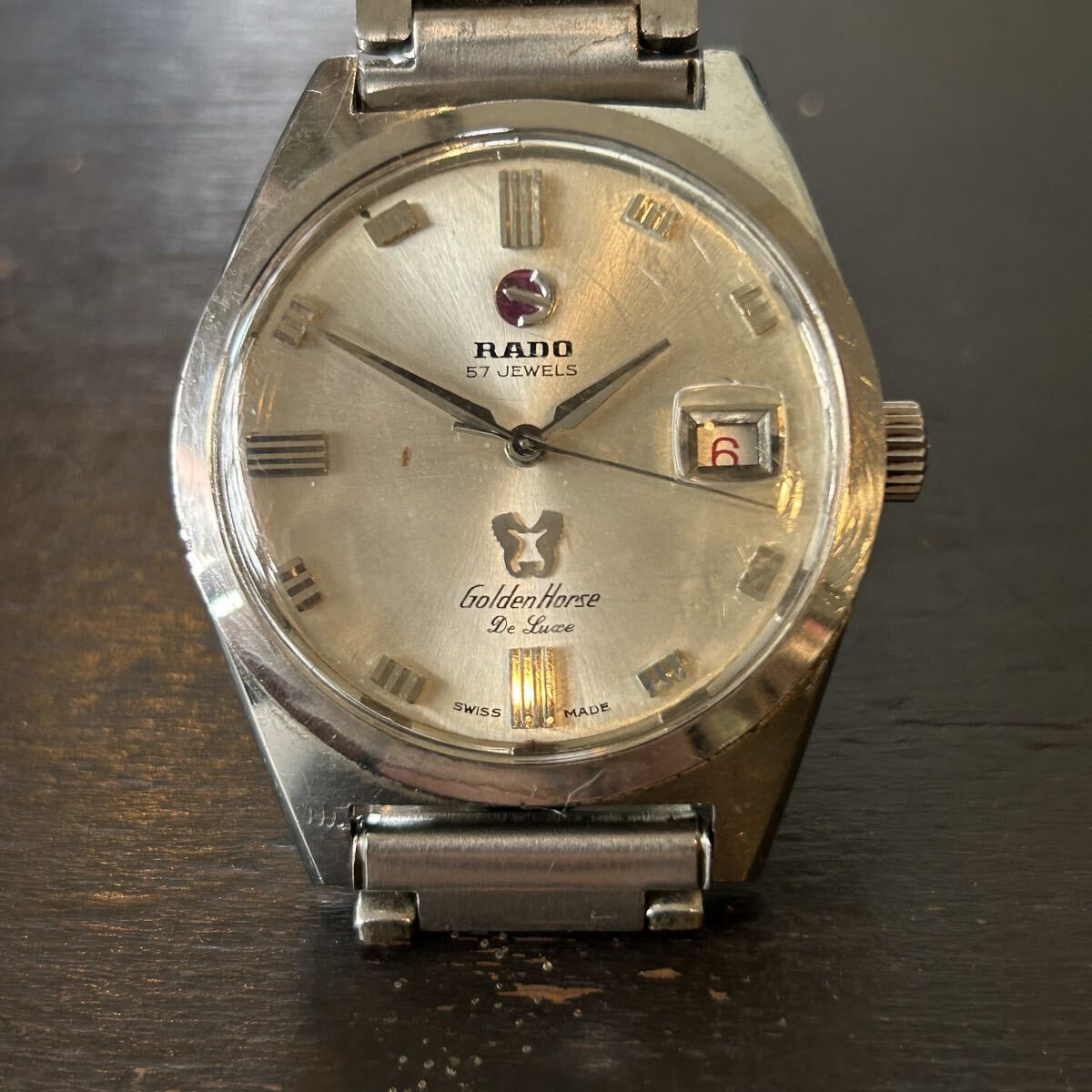 希少 RADO ラドー 自動巻き 57石 メンズ Golden Horse 稼働品 ゴールデンホース デイト ビンテージ 腕時計 アンティーク