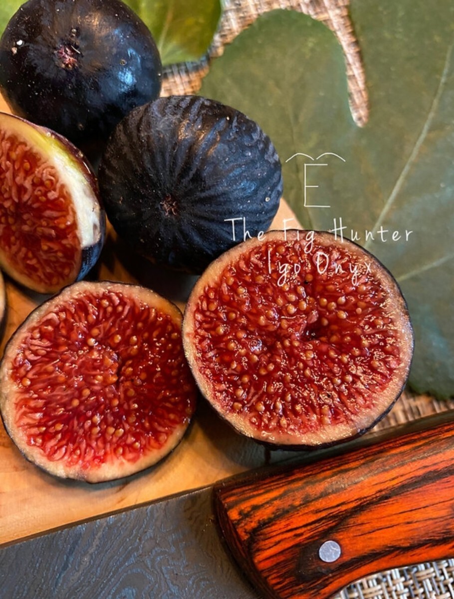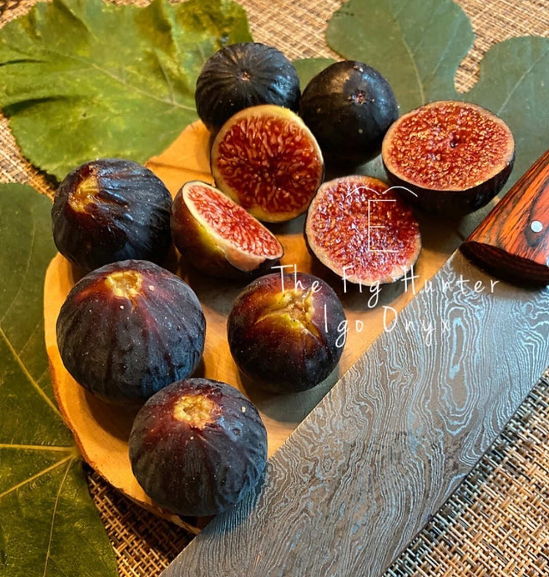 アイゴ・オニキスは、美しい黒褐色のイチジクです。母樹はカリフォルニア州アイゴの町のすぐ外、急な斜面の斜面で見つかりました。果肉は濃い赤色で、独特のマリオンベリーの風味があります。アイゴ・オニキスはジャムのような食感と軽い種の歯ごたえ、そしてベルベットのような皮は黒く、ほとんど青くさえ感じられます。美しいパッケージに、豊かな風味が詰まっています。