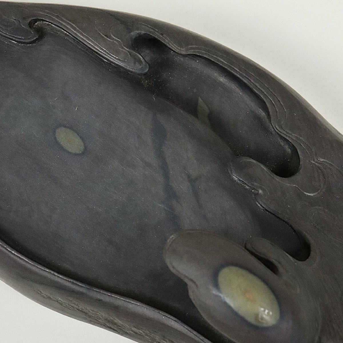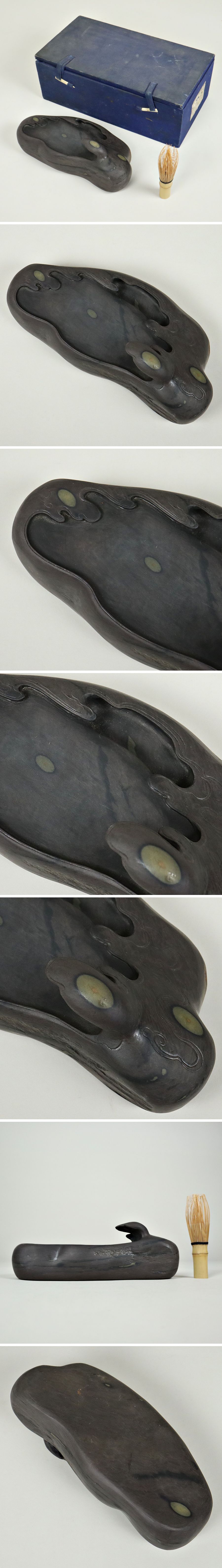 商品名 中国古玩 書家所蔵品 古端渓 端渓水巌硯 石眼 雲図彫 老坑 麻子坑 箱 書道具 文房具 骨董品 古美術品