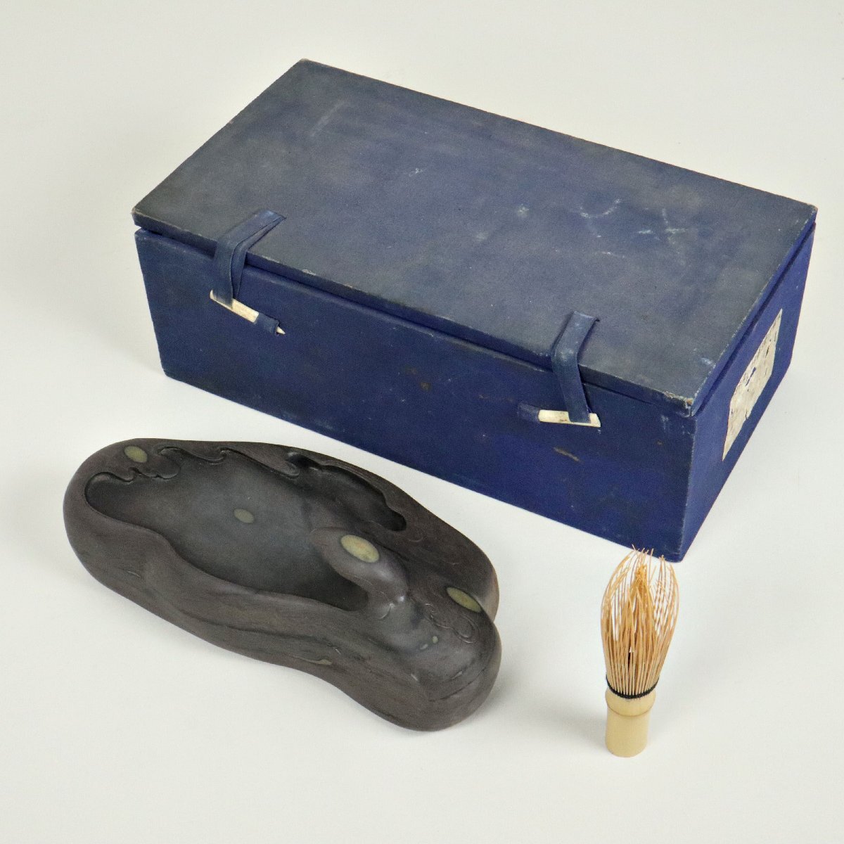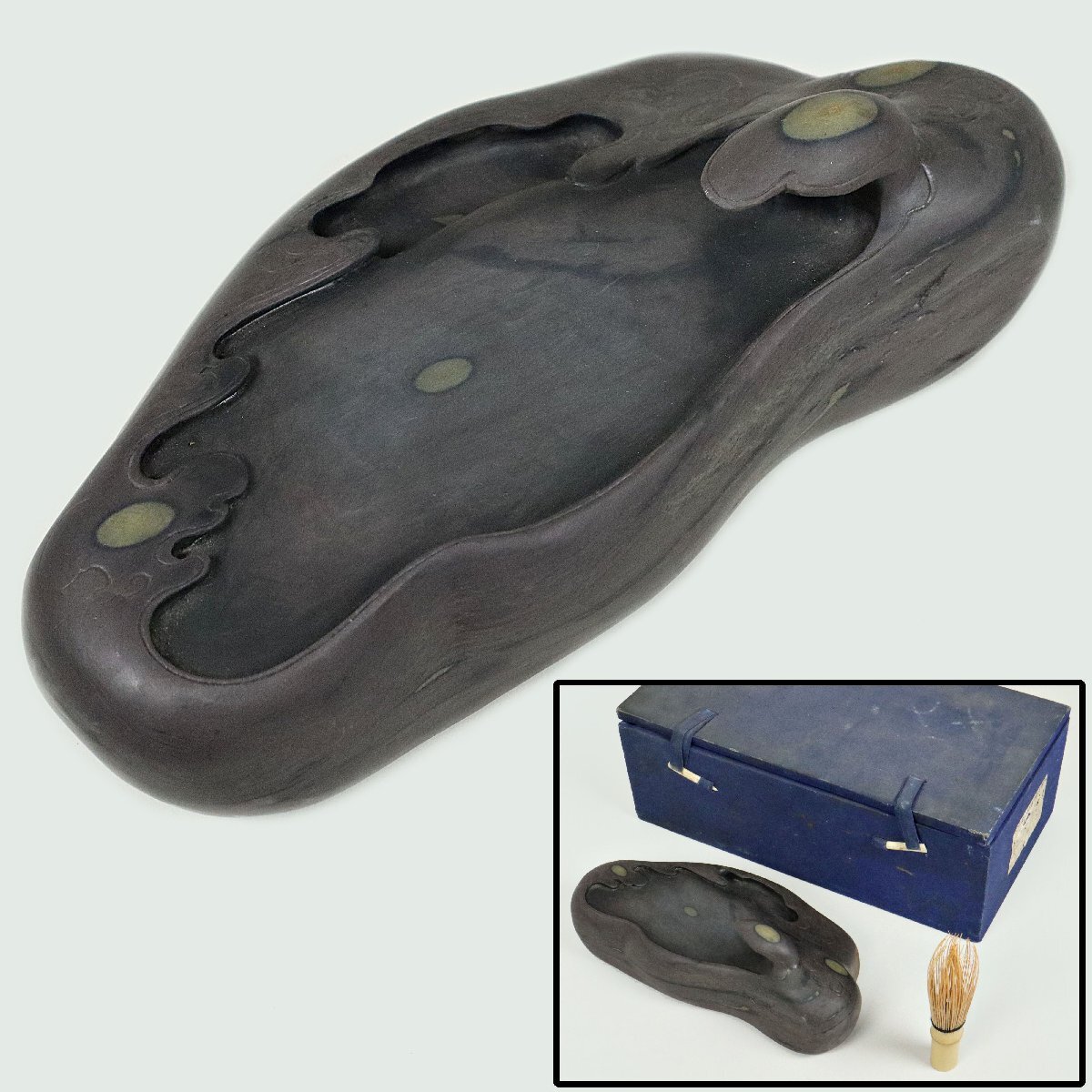 中国古玩 書家所蔵品 古端渓 端渓水巌硯 石眼 雲図彫 老坑 麻子坑 箱 書道具 文房具 骨董品 古美術品 1478sbyN