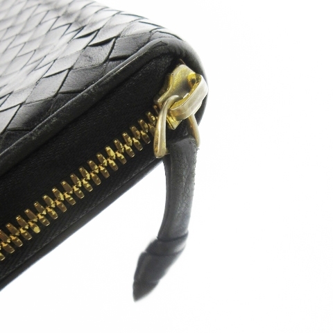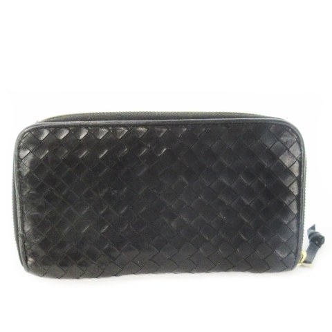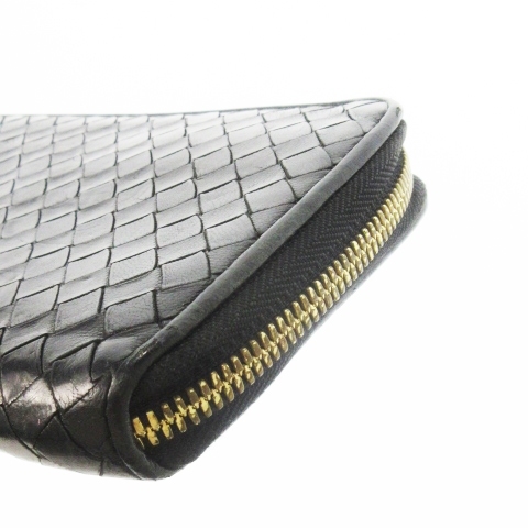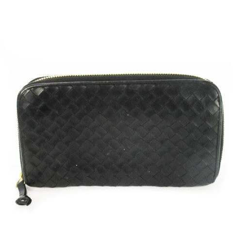 ボッテガヴェネタ BOTTEGA VENETA 長財布 ロングウォレット ラウンド 小銭入れあり レザー 革 イントレチャート 黒