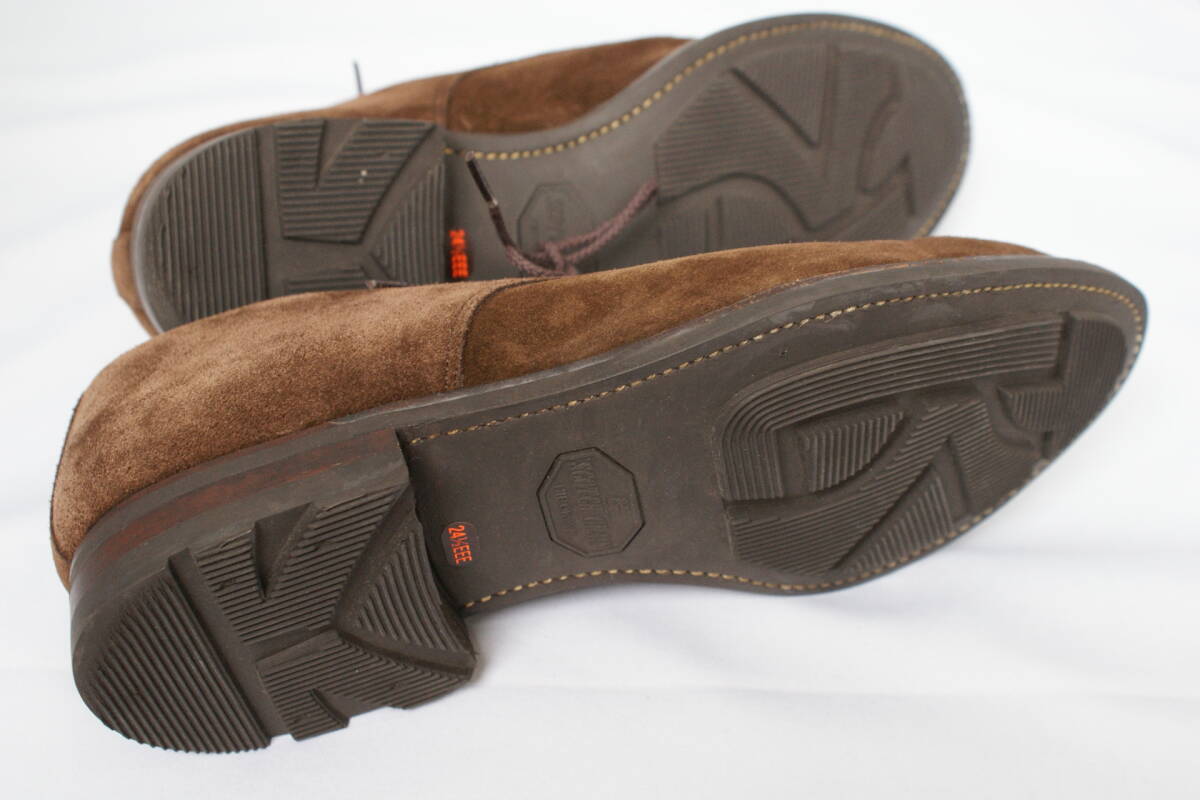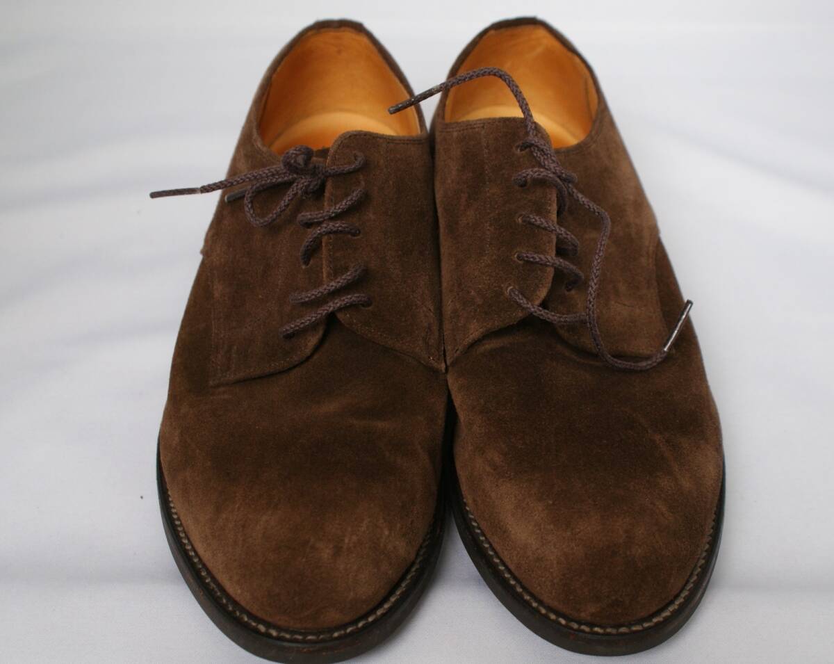 スコッチグレインのスェード素材プレーントゥ、未使用品です。柔らかく上質なスェードレザーを使用し、グッドイヤーウェルト製法で丁寧に仕上げられた一足。カジュアルにもビジネスにも合わせやすく、秋冬のスタイルにぴったりです。