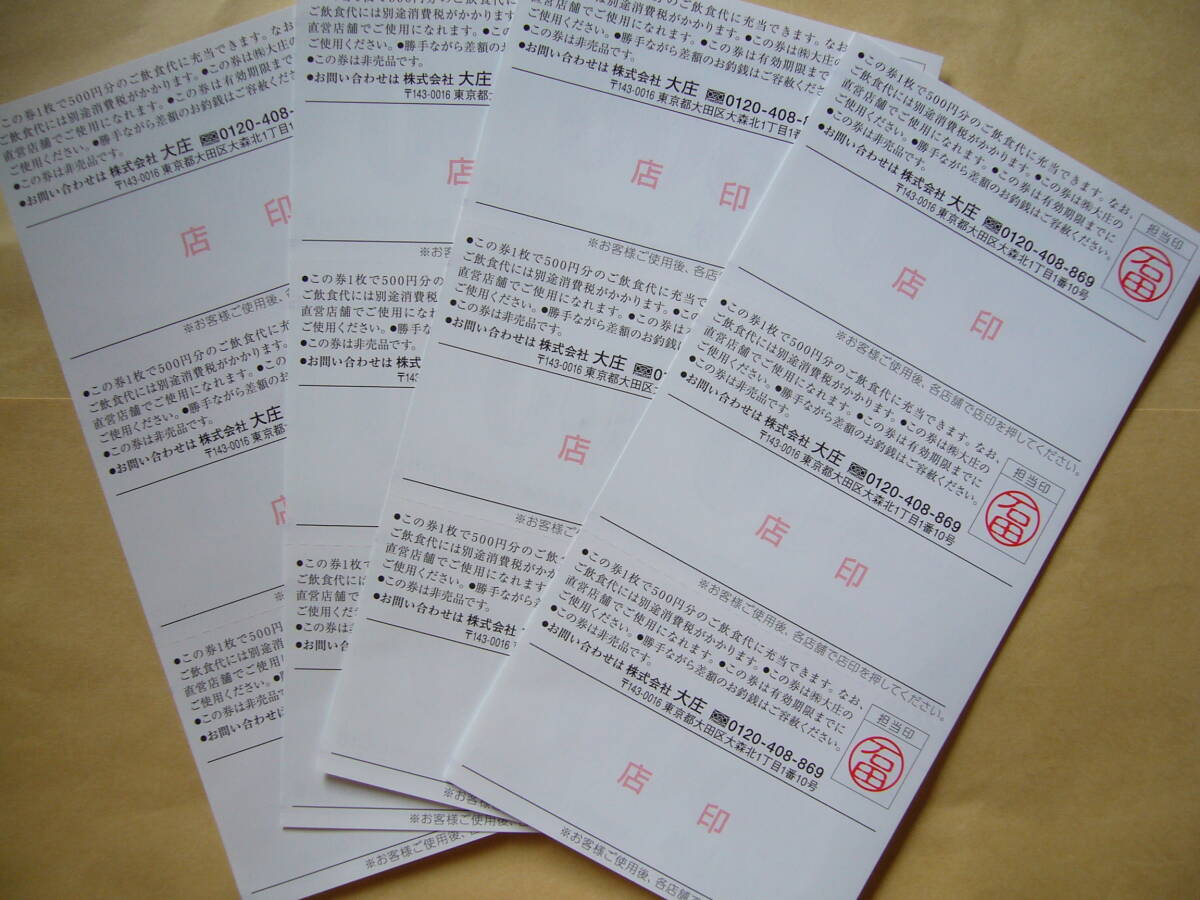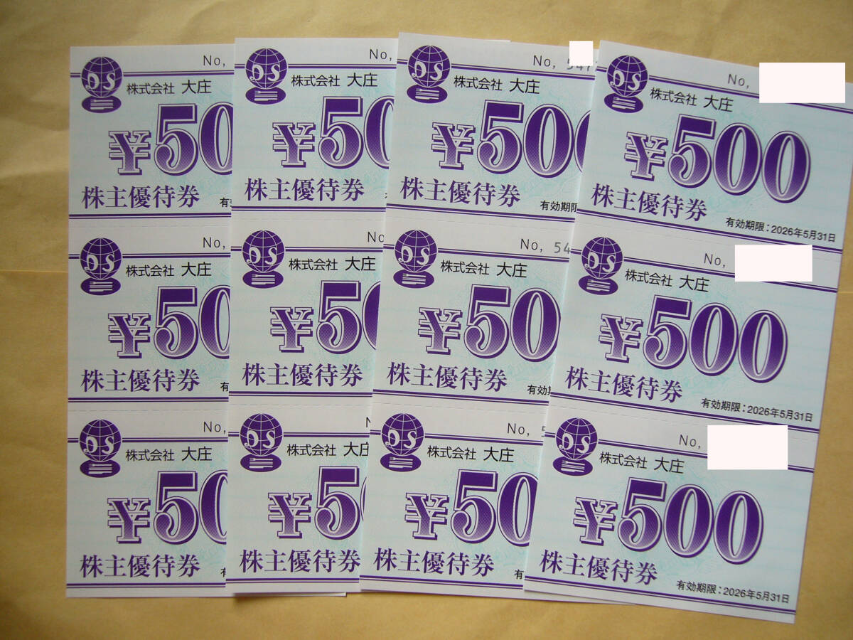 株式会社大庄の株主優待券(500円x12枚)合計6千円分です。