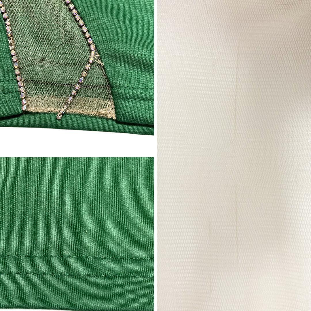 目立った汚れは見当たりませんが、ウエストサイドの透け部分に1箇所つれ、裾透け部分フチの装飾を留めている縫製にほつれ、裾付近に小さな毛玉のできている箇所があります。