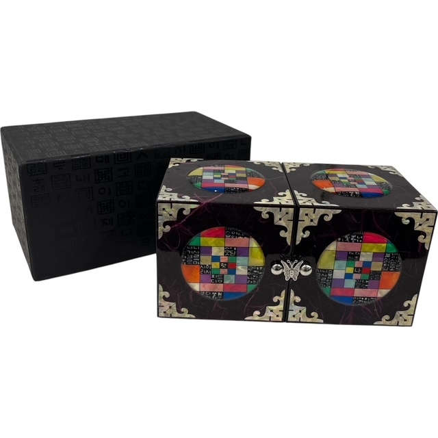 ■韓国伝統工芸 螺鈿細工 双子宝石箱 蝶柄 紫