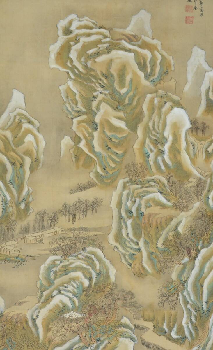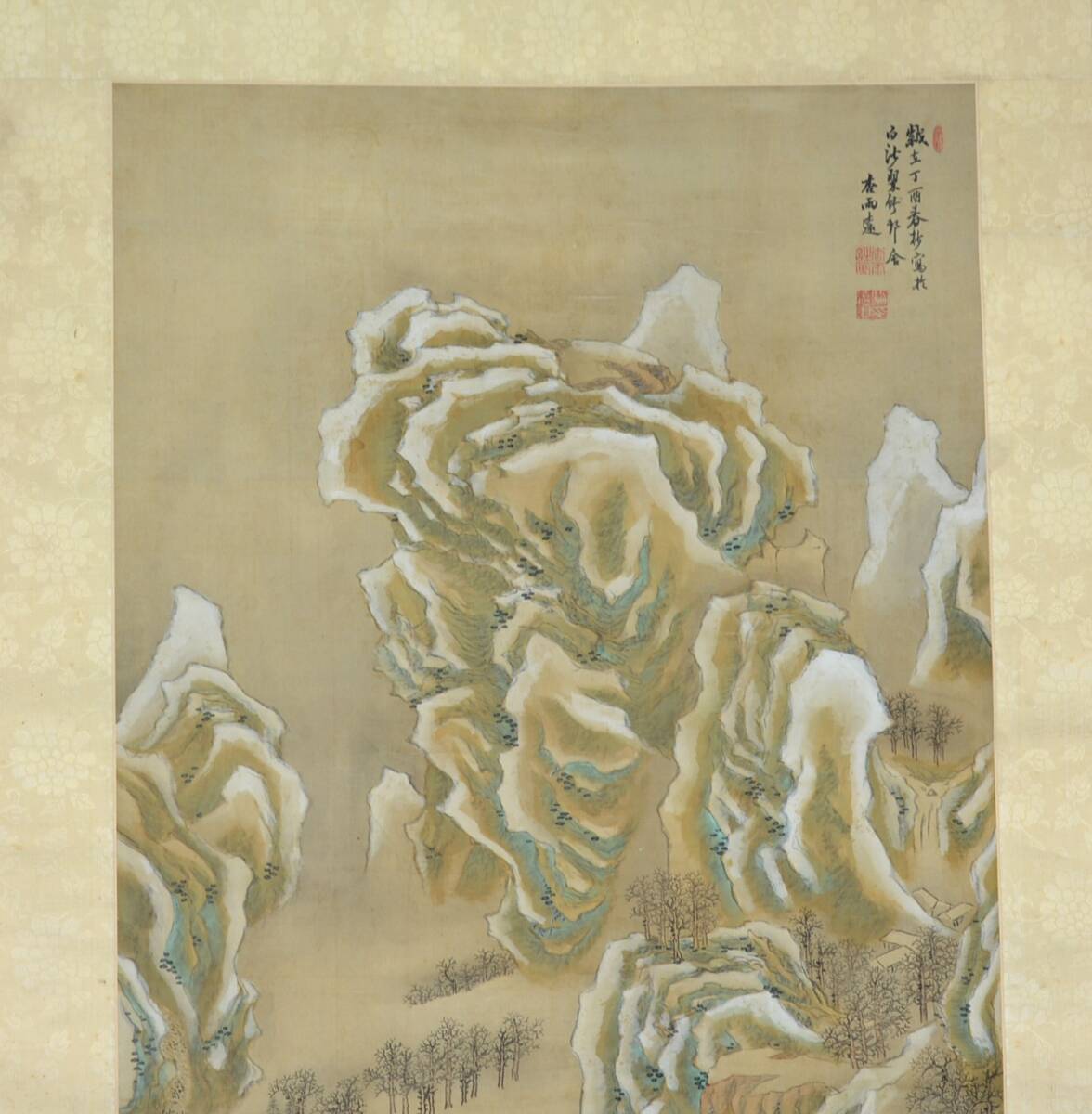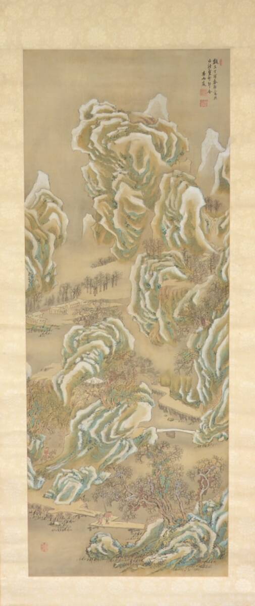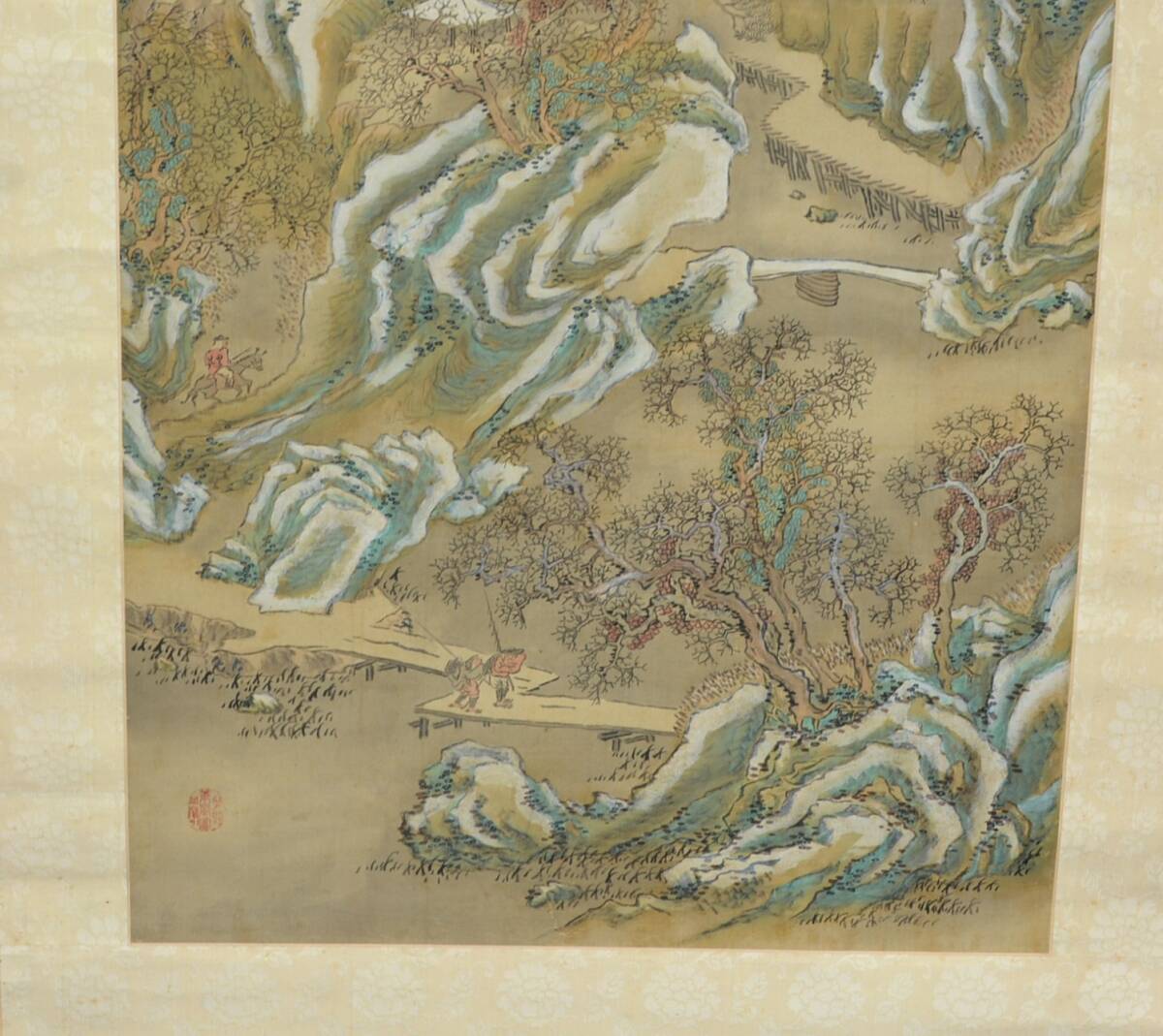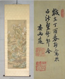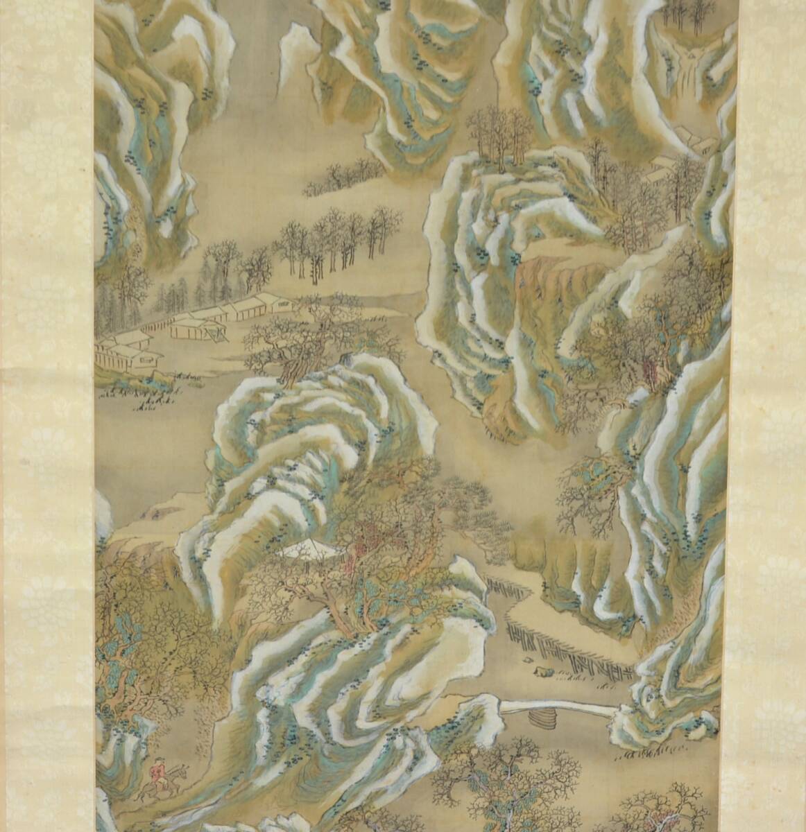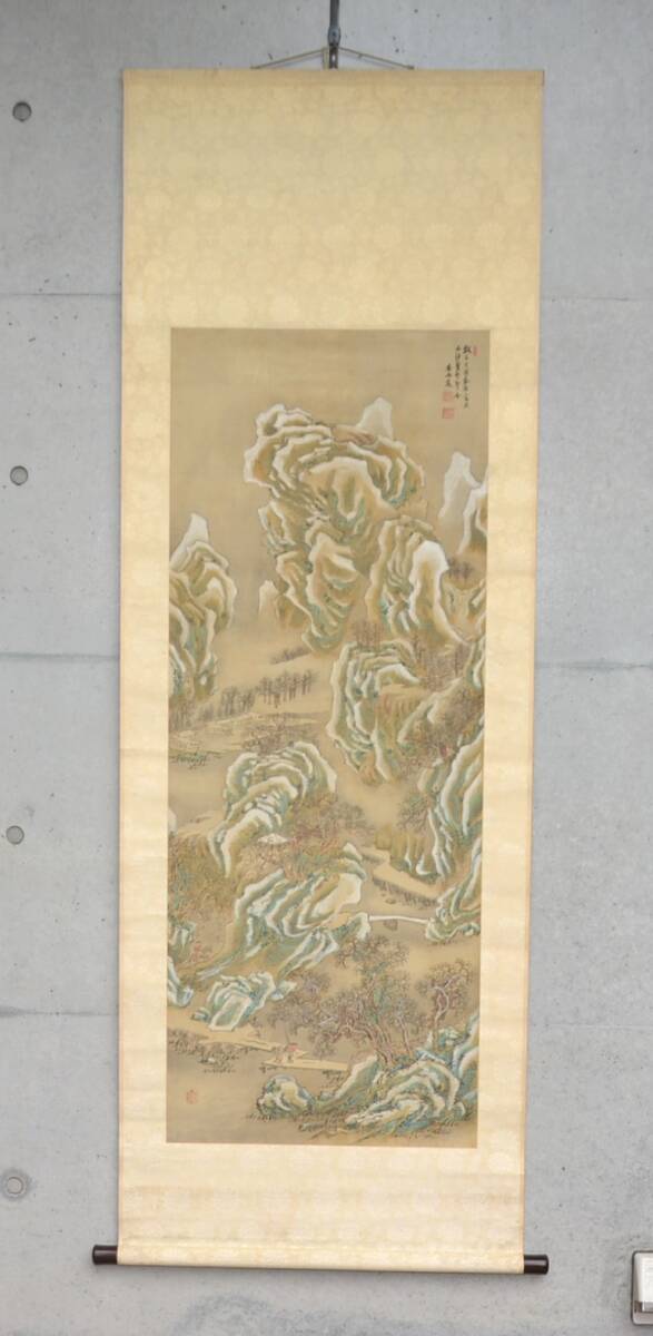 【模写】 18◆初荷です ◆掛軸 帆足杏雨 青緑山水図 絹本 ◆師は田能村竹田