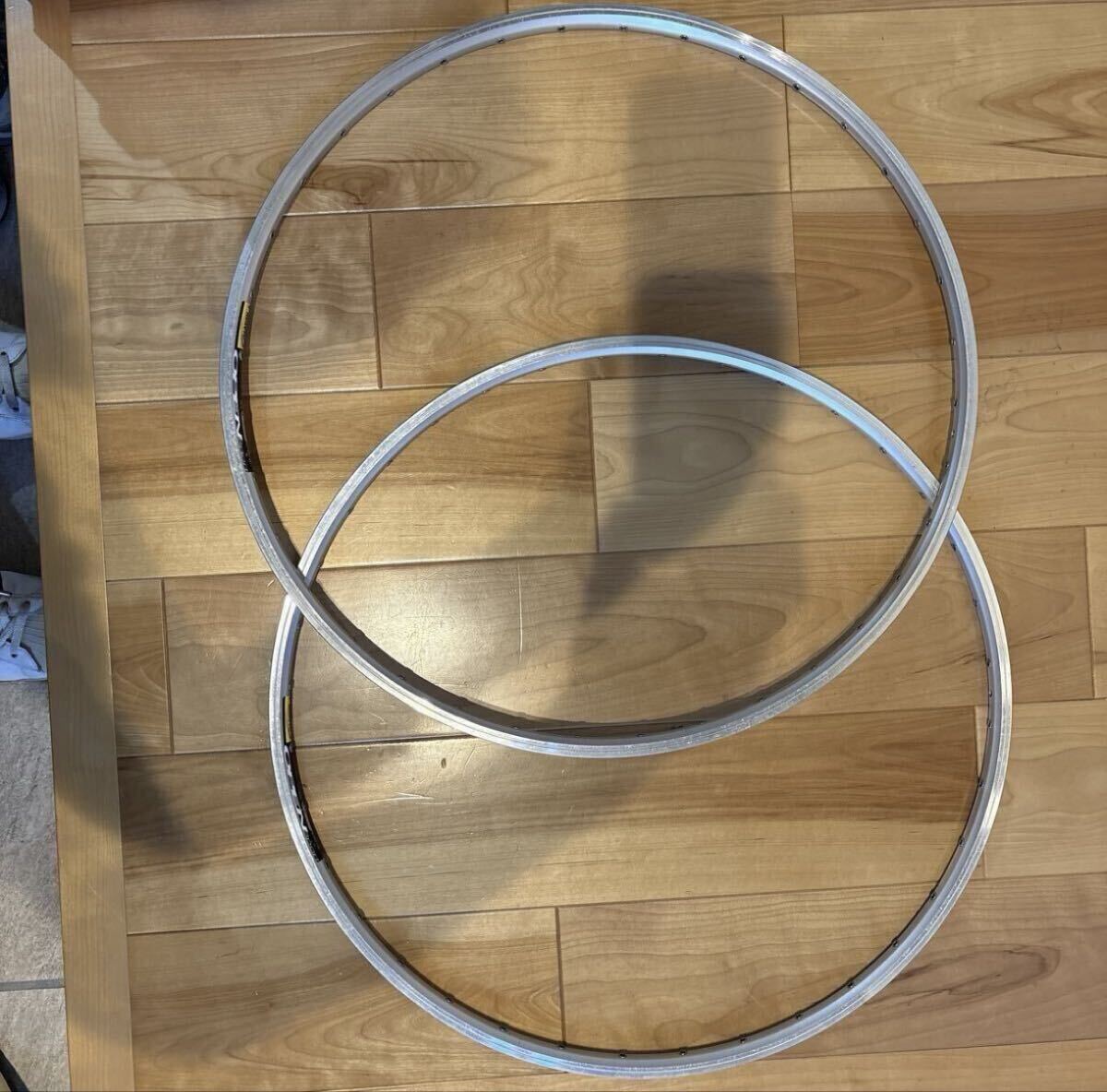 新品で購入しました。ディスクブレーキ用のハブで組んで数回、街乗りで使用しました。その後、室内で長期保管していました。使用回数は少なくディスクブレーキでの使用につき、ブレーキ跡や傷はありませんが、長期保管に伴う汚れやサビが見られます。きれいな商品をご希望の方は、入札をお控えください。また、36hの仕様ですのでお間違えのないようにお願いいたします。中古品につきノークレームノーリターンでお願いいたします。