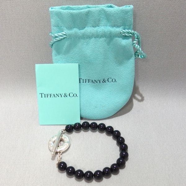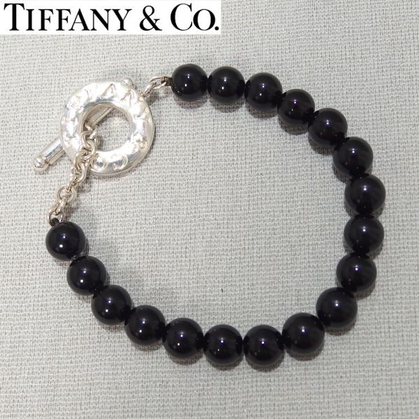 美品★TIFFANY&Co オニキス ビーズ トグル ブレスレット SV925 シルバー ティファニー★