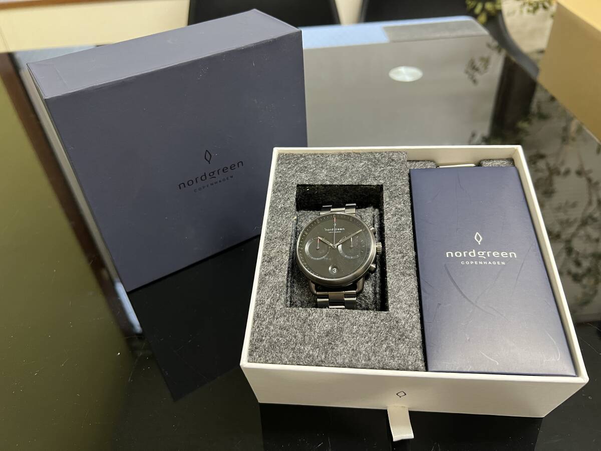 極美品 使用数回 nordgreen ノードグリーン ブラック クロノグラフ 腕時計 黒 稼働品