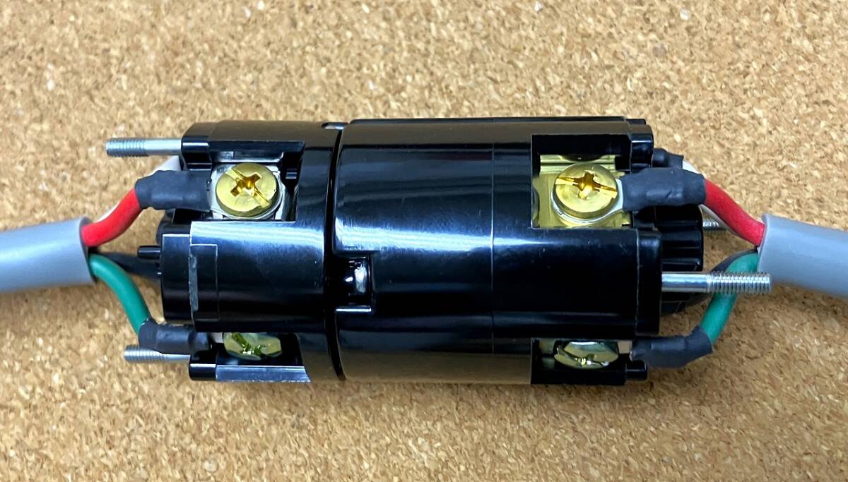 ※ 正規の配線位置になっておりますが、万が一 モーターなど逆回転する場合はどちらか片方のプラグ内の赤と黒の配線を繋ぎ替えてください。稀に倉庫側の配線や延長コードなどが逆相になっている場合があります。