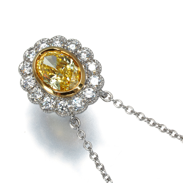 洗練されたデザインが胸元を飾る、ティファニーのエンチャント ダイヤモンドネックレス。ファンシーインテンスレベルの色鮮やかな厳選イエローダイヤの上品な輝きがデザインをより引き立てています。 |