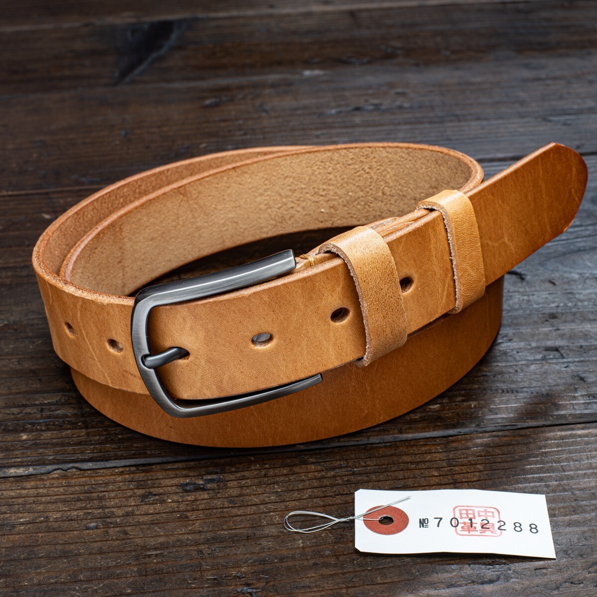 ナチュラルタン【牛革】イタリアンレザー ブラウン 茶 ヌメ革 ベジタブルタンニン メンズ 本革 ベルト 新品 未使用 送料無料 1円 田中革具