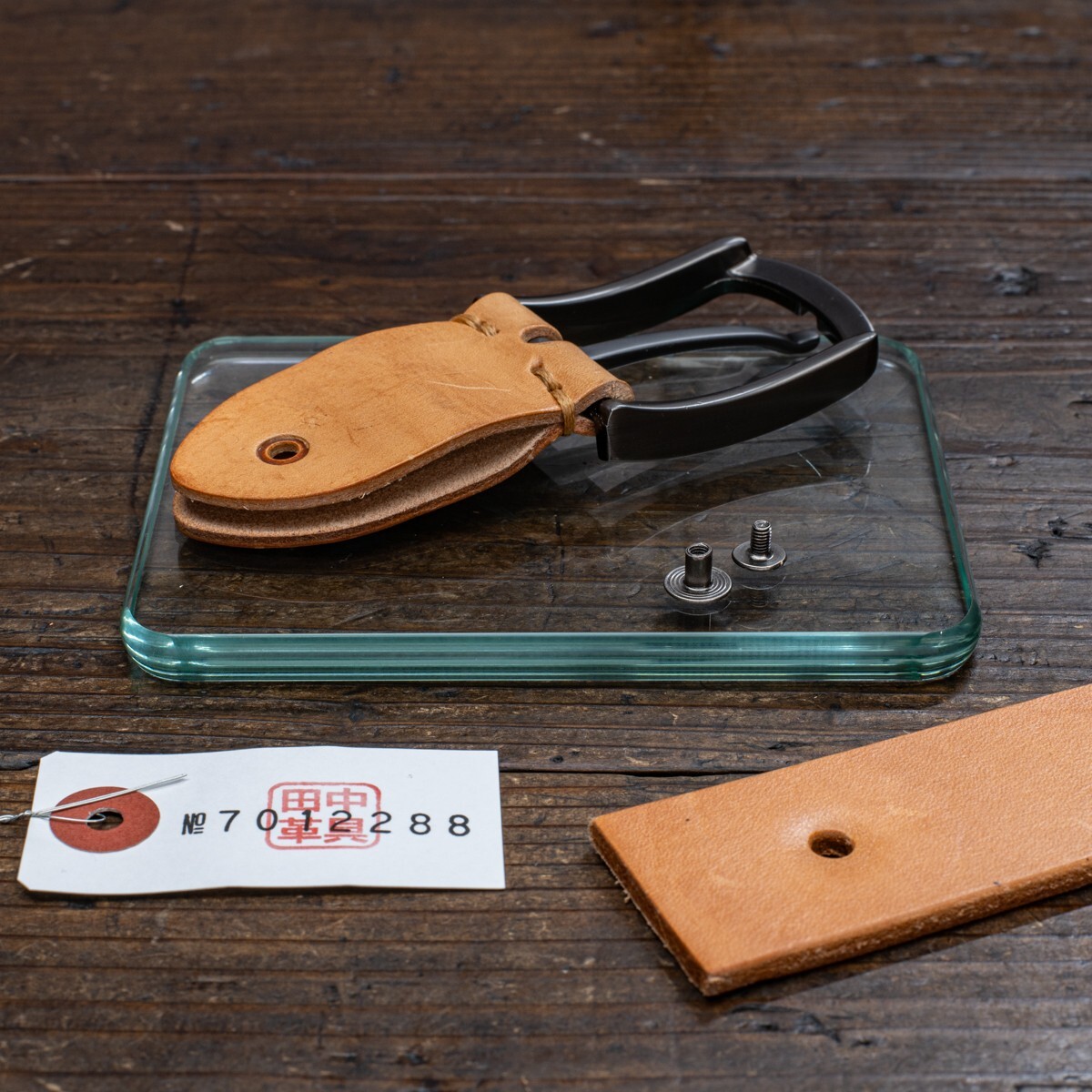 バックル裏のネジ金具をマイナスドライバーで外し、ベルトを好みの長さにカットしたあと、革用錐でネジ穴を開けて、再度金具を締め直してください。