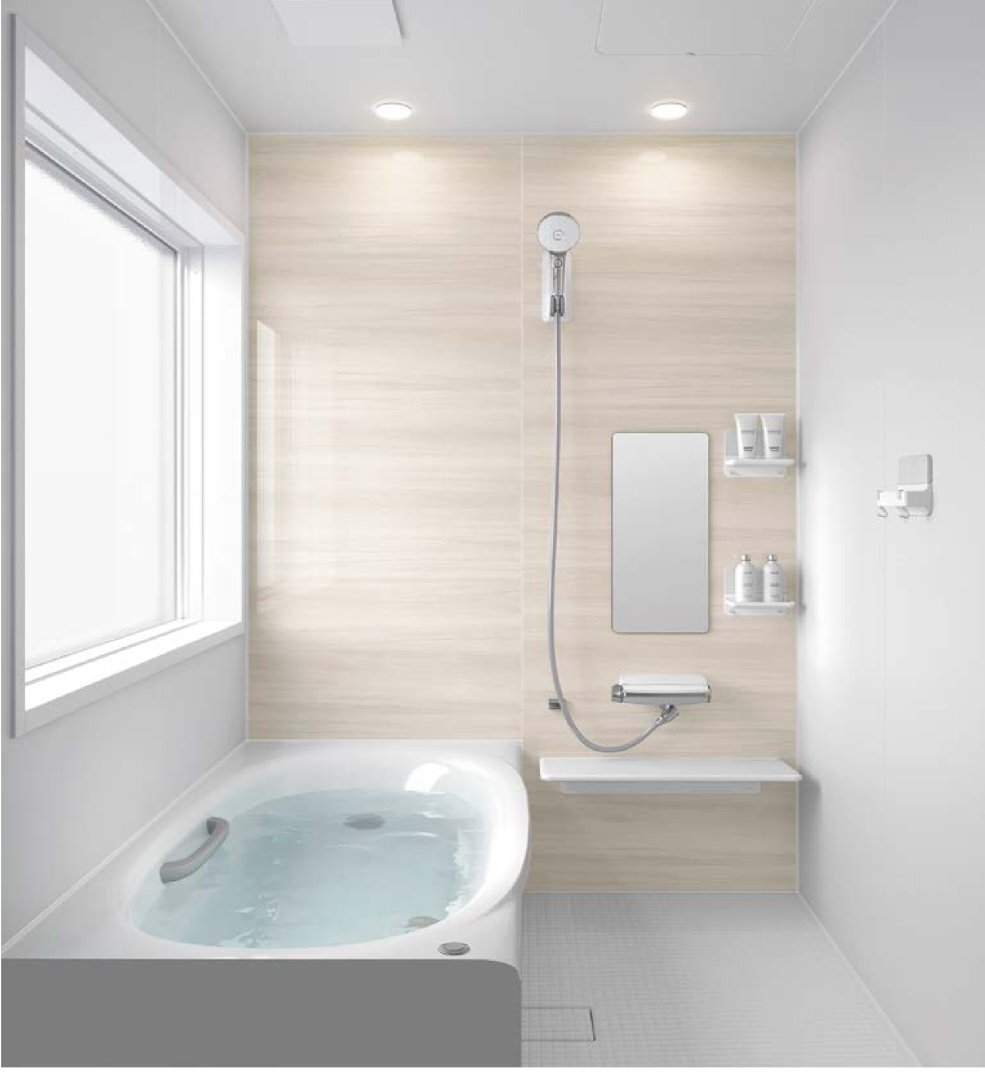 ◎LIXIL戸建住宅システムバス『リデア 』1616サイズ・Mタイプ 即決価格は、商品定価1.245.140円の68%OFFで、438.289円【消費税込】 ◆据付必要寸法は、1670×1670×H2750mm。 ◆あなたのライフスタイルにぴったりのバスルーム『リデア』 ◆壁は、アクセントパネル張り。ウッドグレインライトは、光沢のうす茶が、落ち着いた浴室に。 ◆床は、スポンジでキレイ。冷ヤッとしない。水はけがよく、すべりにくい『キレイサーモフロア』 ◆お湯をぬくたびに強い渦の力でゴミをまとめる『くるりんポイ排水口』 ◆極上の入浴感をかなえる『ミナモ浴槽』湯面の広がりと、開放感が感じられる浴槽です。 ◆折り戸です。汚れにくいスッキリデザインの『キレイドア』 ◆浴室内の好きな場所に、どこでもシャワー『マグネットシャワーフック』 ◆たっぷり置けて、裏までキレイな『まる洗いカウンター』カウンターがまるごと壁からカンタンに外せます。 ◆ダブル保温構造で、最後のひとりまで、あたたかい『サーモバスS』 ◆大粒の雨のような、やさしい浴び心地のシャワー『エコアクアシャワー』 ◆どこからでも操作が簡単な大型レバーハンド『ワイドレバー水栓』 ◆まぶしさを抑えた発光面で、低消費電力・長寿命のLED照明『パネルダウンライト』 ◆窓・追い焚きセットは価格に含まれていません。 ◆北海道仕様はお問い合わせください。 | |