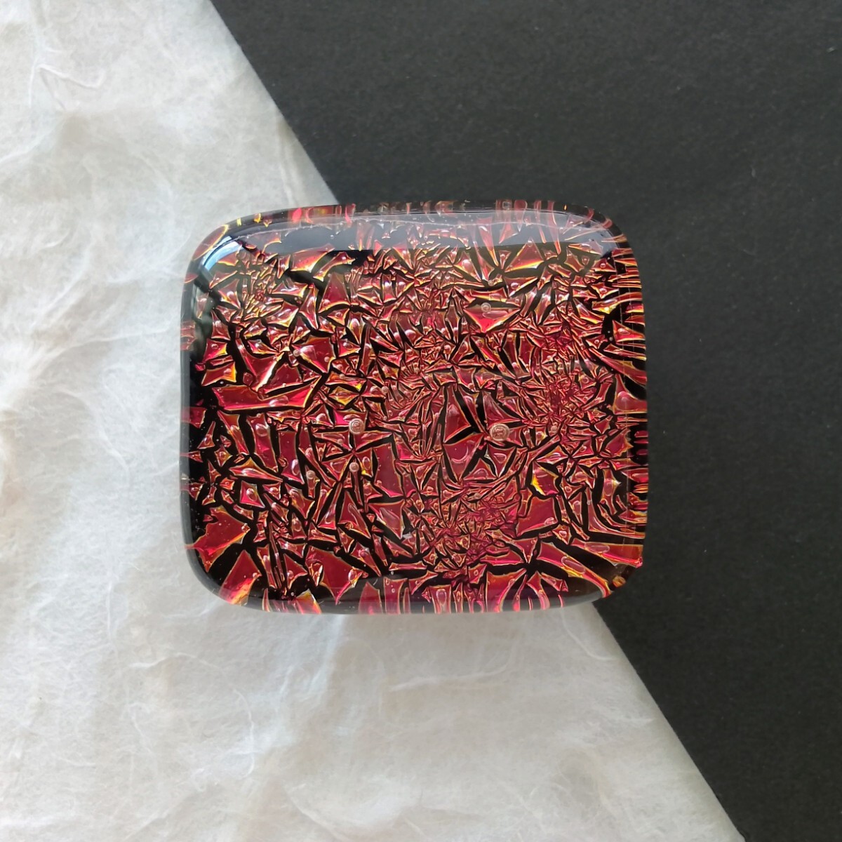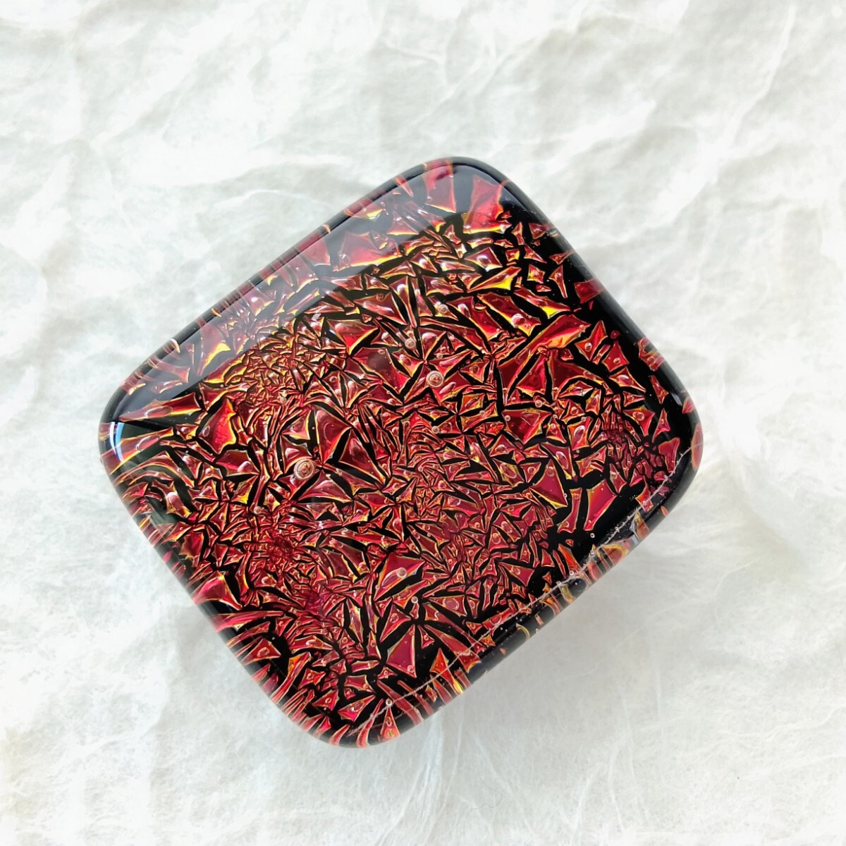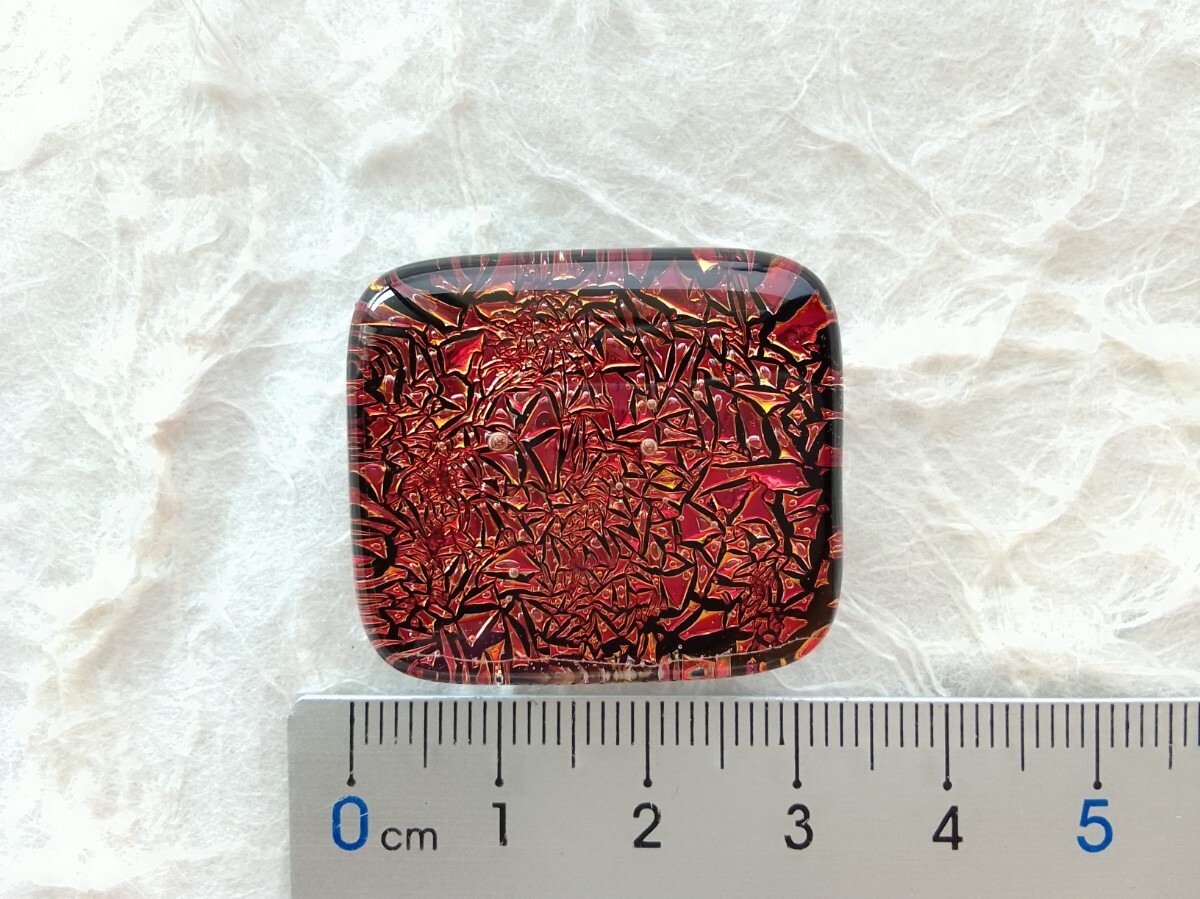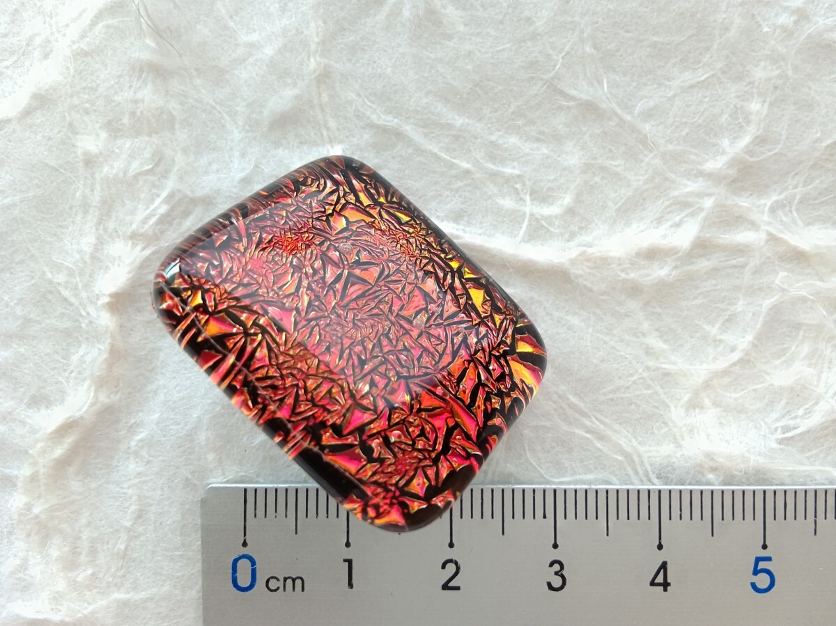 美しいダイクロガラスを電気炉で焼いた帯留め。