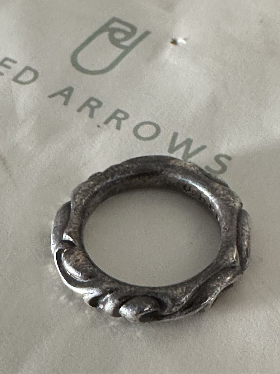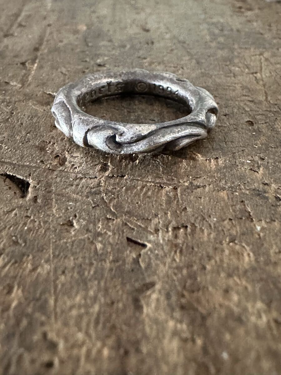 クロムハーツのスクロールバンドリングは、ブランド設立当初から存在する定番のリングで、波をモチーフにした流れるようなデザインが特徴です。細身でありながらも適度なボリューム感があり、男女問わず人気が高いアイテムです。