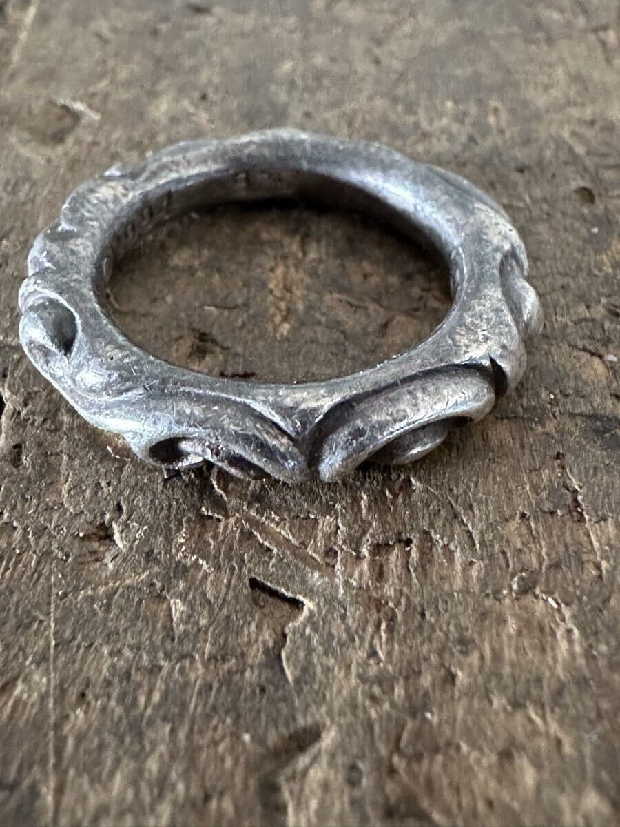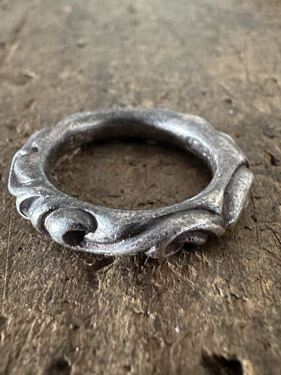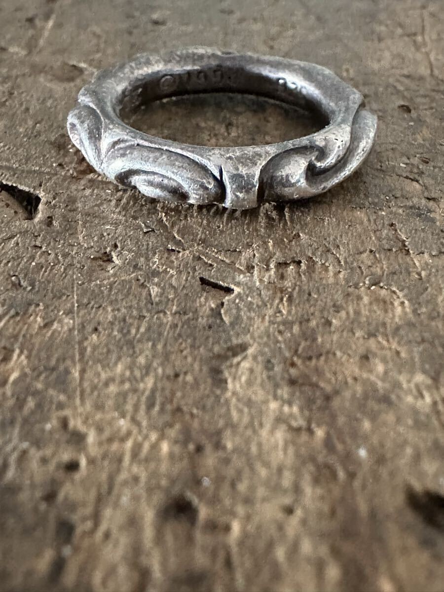 平らなデザインが多いクロムハーツのリングの中で、全体が丸みを帯びた形状をしているのが特徴です。