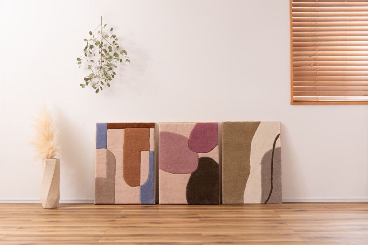 人気のタフティングを木枠のパネルに施し、置くだけでお部屋を彩るウォールアートに。