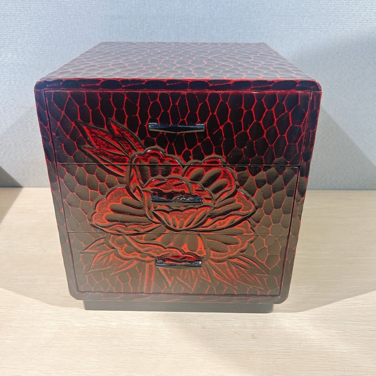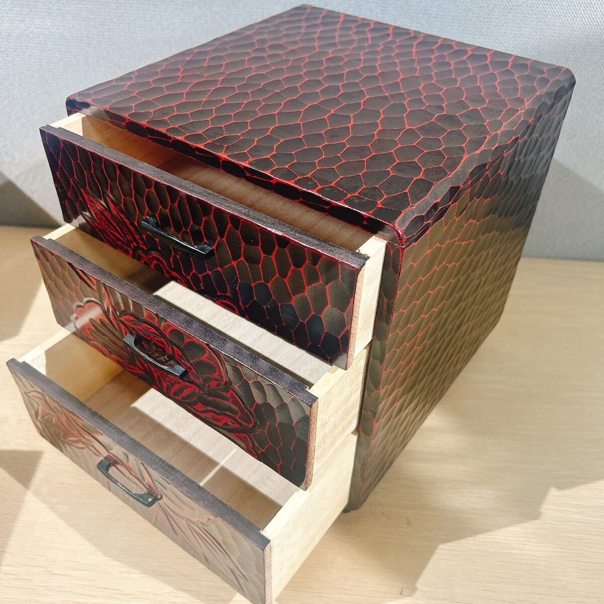 中古品 鎌倉彫 小引き出し 小物入れ 木製 収納 レトロ 伝統工芸 和箪笥