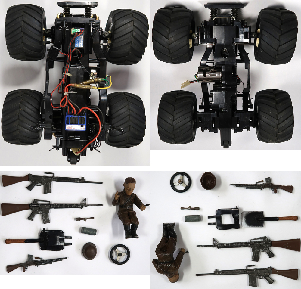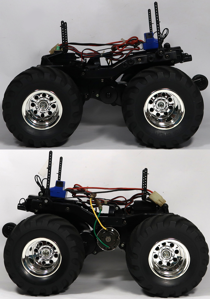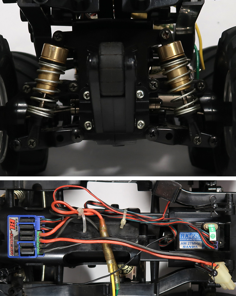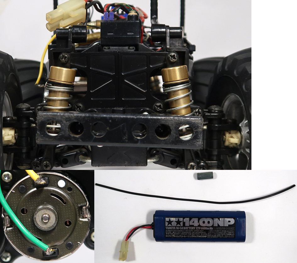 出品は画像の物のみです。他に必要なものはご自分でご用意ください。バッテリーは消耗品ですのでいかなる状態であったとしてもノークレームです。使用品ですので擦り傷や汚れが有ります。ボディのパーツが不足している箇所があります。人形、ハンドルやメーターパネルの接着が取れています。ダンパーはオプションのものが付いています。ベアリングは4輪とも入っています。私が確認する限りはその他にひどい破損は確認出来ませんでした。バッテリーを充電してテストしましたが、動作はしました。このままでもすぐに走らせる事は可能ですが、多少なりともメンテナンスは必要かと思います。分かる事は以上です。お取引後は一切のサポートはしておりません。また必要なパーツはお取り引き後にご自分でお調べください。お取り引き後に説明以外の不足品や説明以外の破損や故障が有ったとしても返品は出来ませんしクレームもお受けできません。