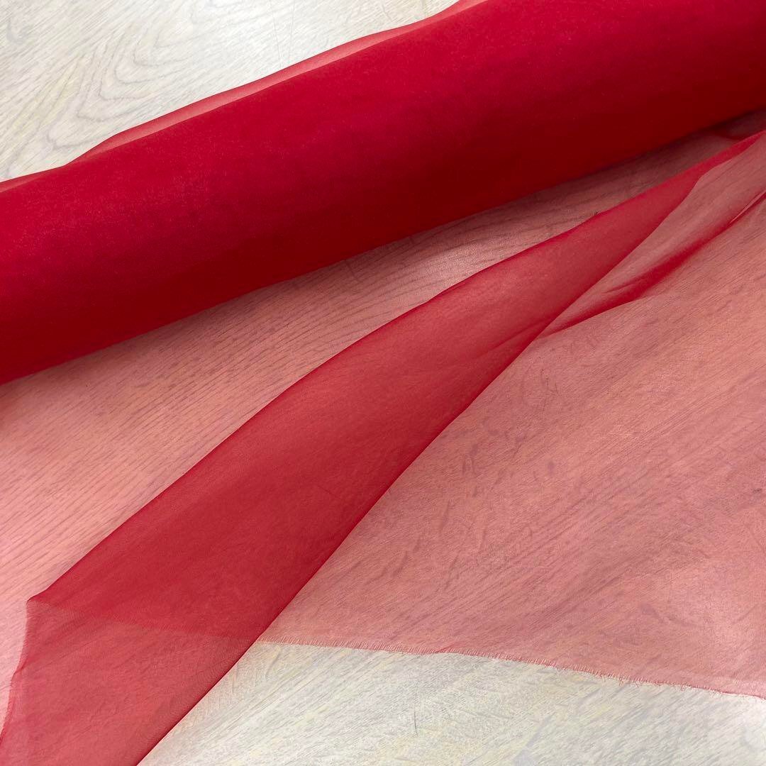 値下げ1反売り♪レッド色薄手の光沢控えめオーガンジー 1反50m