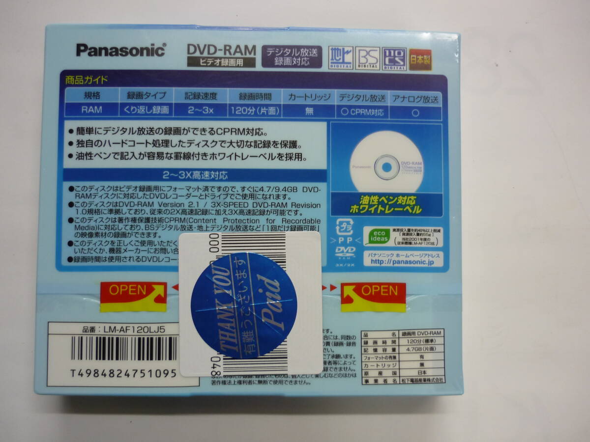 未開封 Panasonic DVD-RAM 5枚Pack LM-AF120LJ5 パナソニック です。外ビニール裏面にシール貼りや細かなスレ等ありますが、未開封新品です。お好きな方いかがですか?