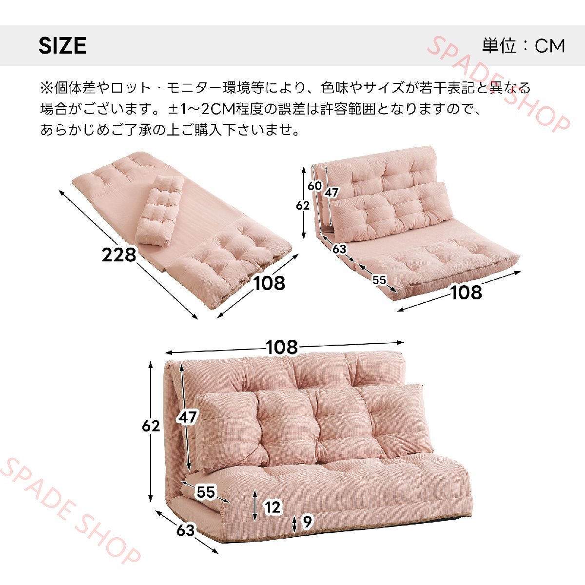 • ★【サイズ】約幅108×奥行き63~228×高さ9~62cm ◆材質:【構造部材】スチールパイプ【張り材】ポリエステル100%又は合成皮革【クッション材】ウレタンフォーム・ウレタンチップ・綿 ◆重量:約13kg(梱包材込み約17㎏)