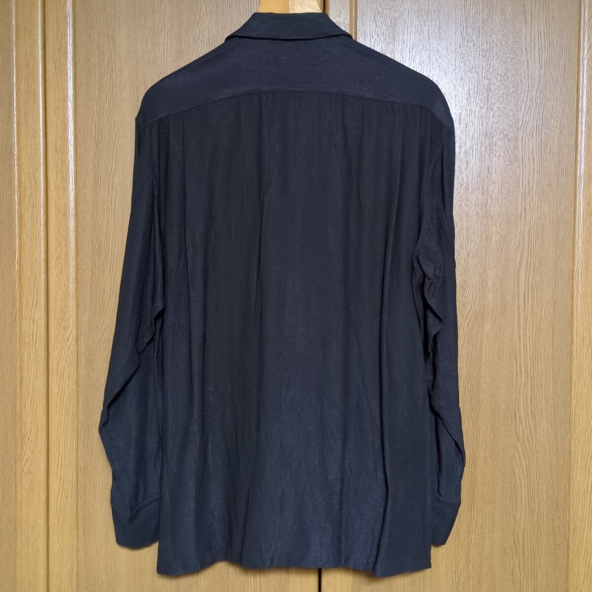 80s90s ヴィンテージ TAKEOKIKUCHI タケオキクチ 黒 ブラック 開襟 オープンカラー 長袖 シャツ レーヨン 日本製 ( アーカイブ ニコル ビギ
