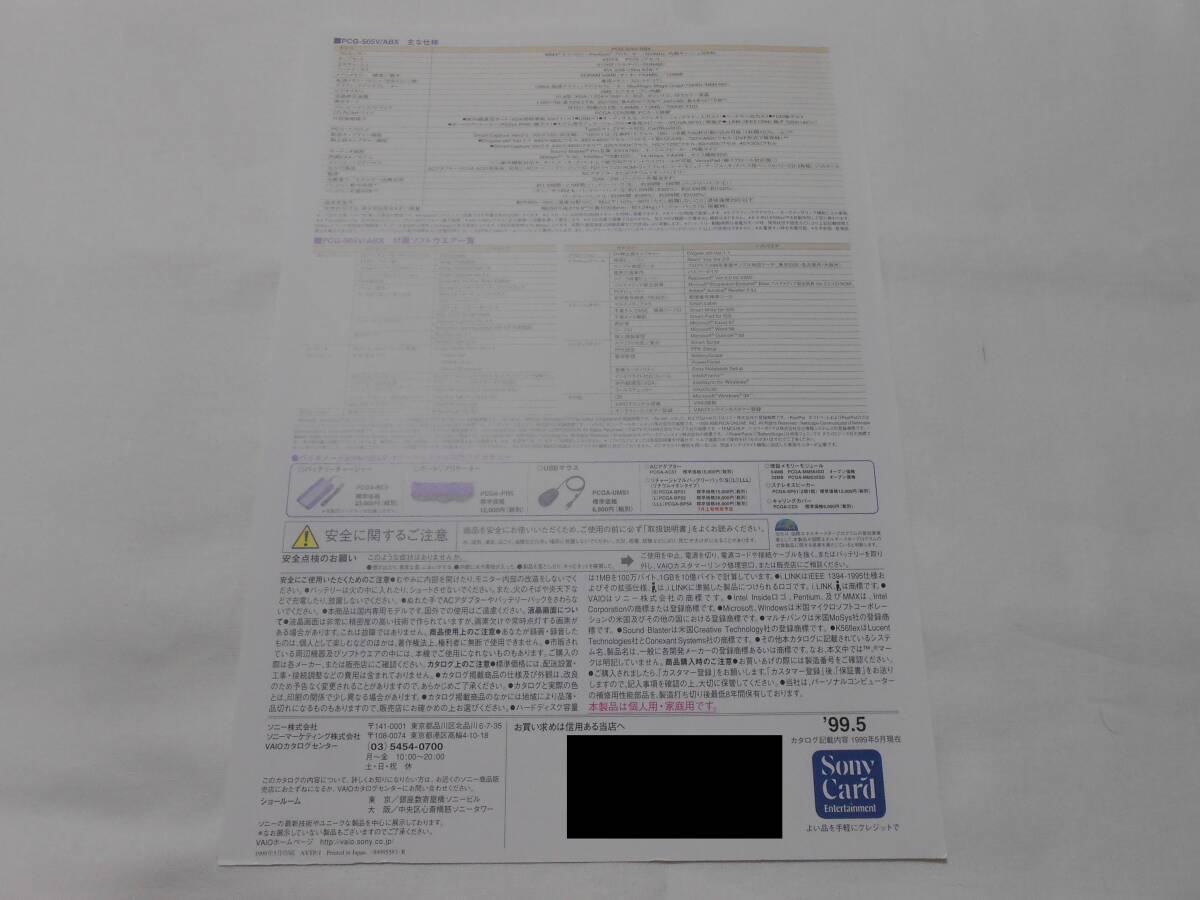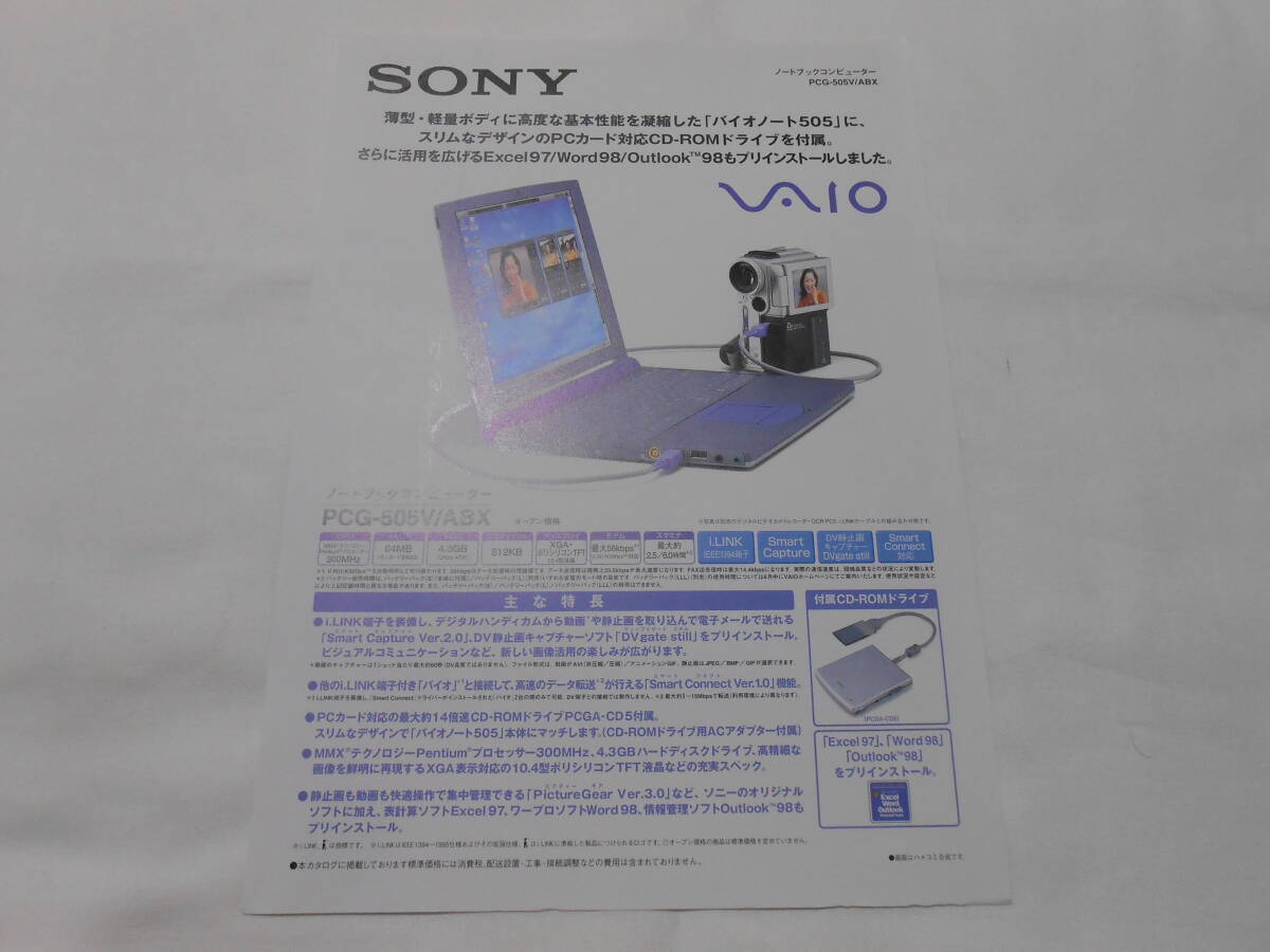 カタログ SONY vaio ソニー バイオ ノートブックコンピューター PCG-505V/ABX バイオノート 1999年5月