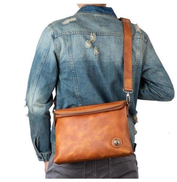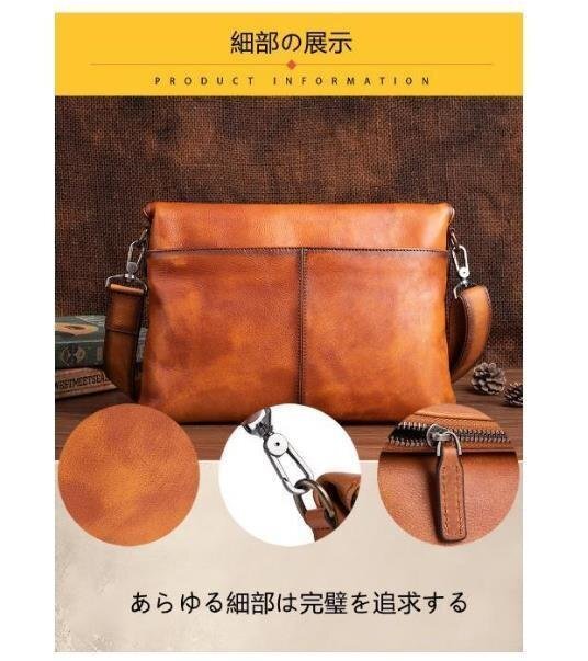 職人手作り ヌメ革 メンズ ショルダーバッグ メッセンジャーバック 斜めがけ 肩掛け レザー ビジネスバッグ 大容量 通勤