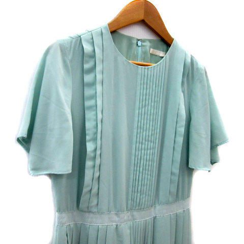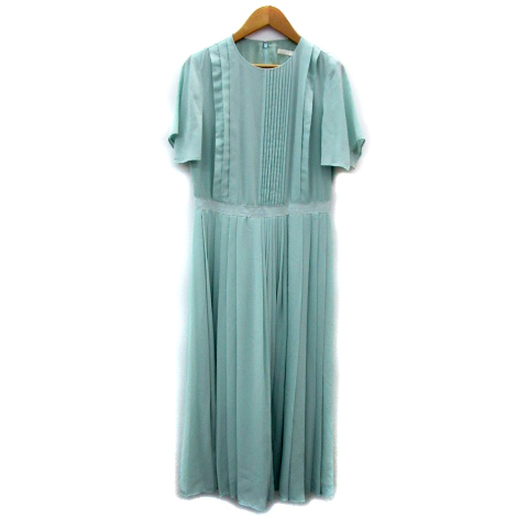 ナチュラルビューティー NATURAL BEAUTY ワンピース 半袖 ロング丈 プリーツ 無地 38 ミントグリーン /MA2 レディース