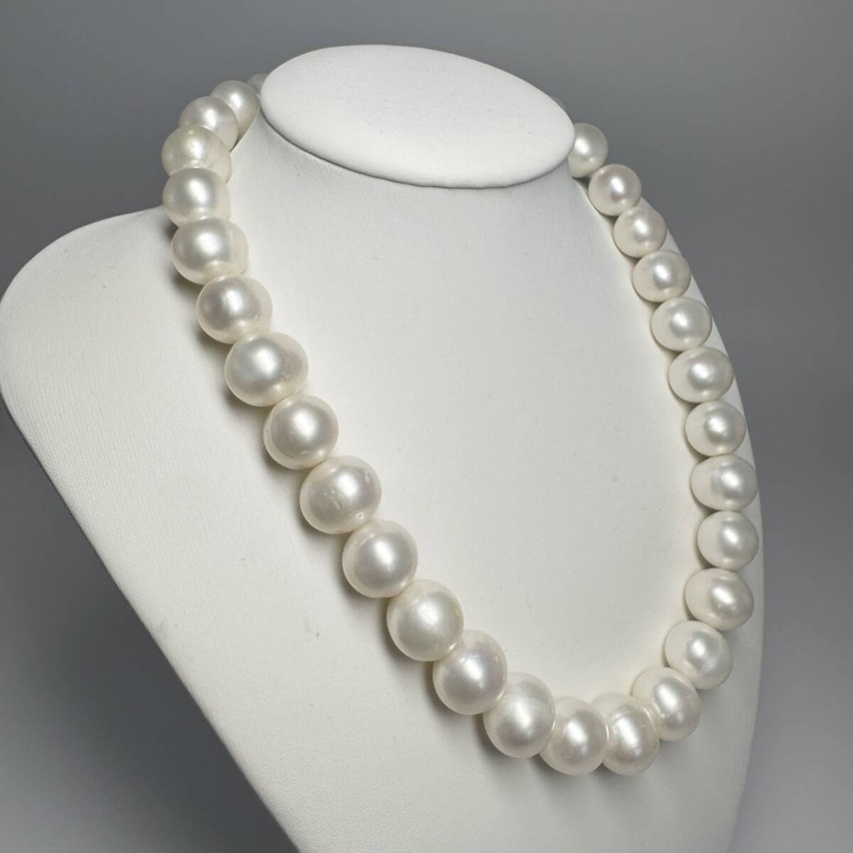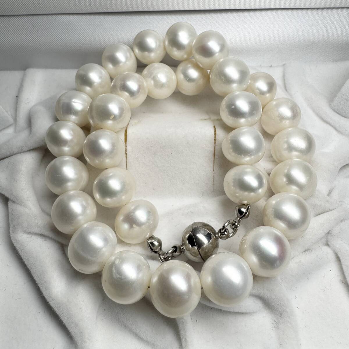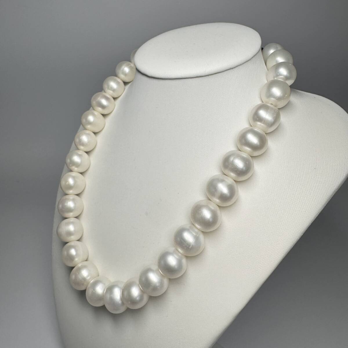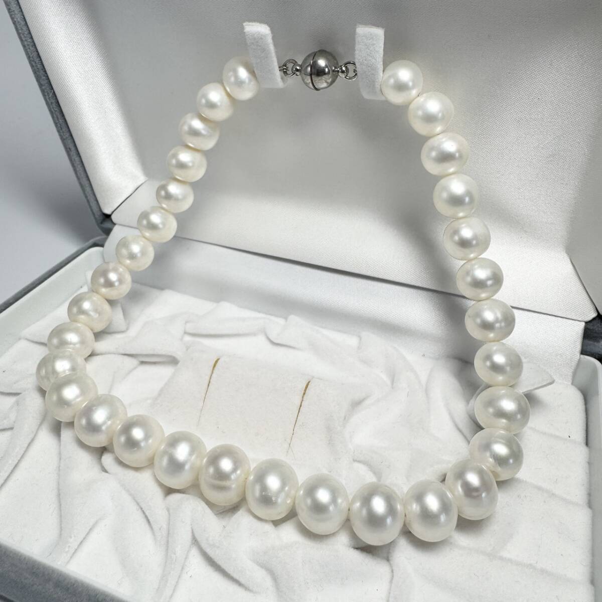 【テリ強】 11.6-12.3mm 真珠 ネックレス 留め具マグネット 36.5cm 69.2g ホワイト系 パール ジュエリー 宝石 2SEND