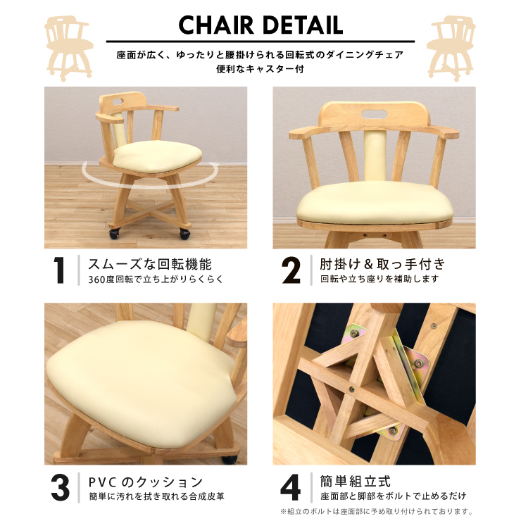 回転式 ダイニングチェア 1脚入 肘掛け 取っ手 キャスター付き rest-ch-360-nbh クッション ゆったり 広い 座面 食卓椅子 5s-1k-158 tw
