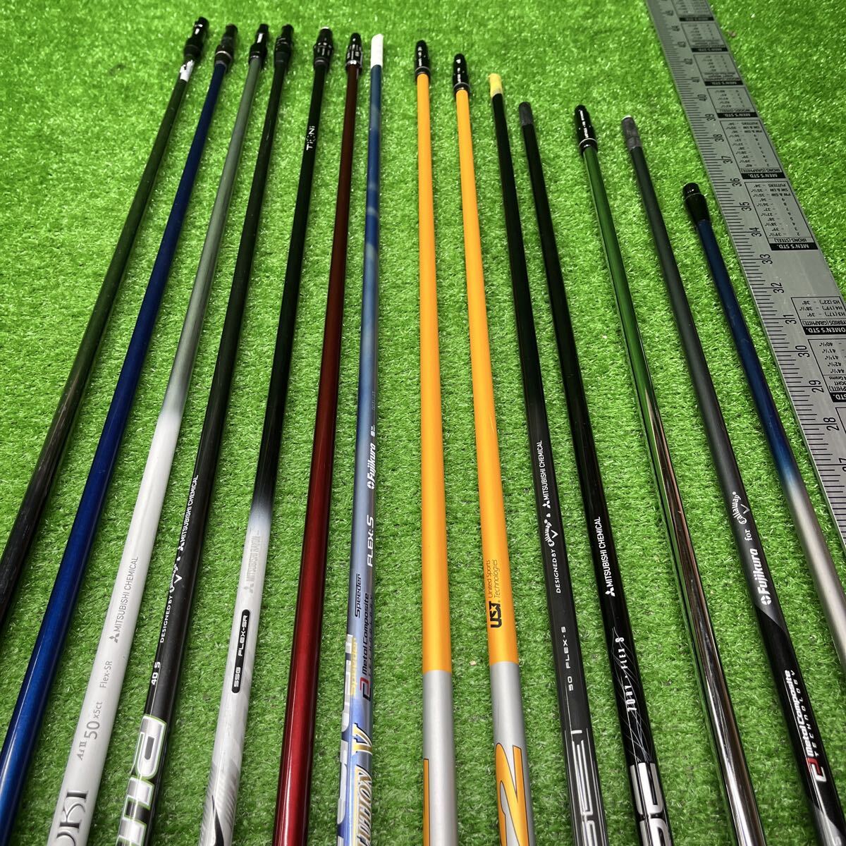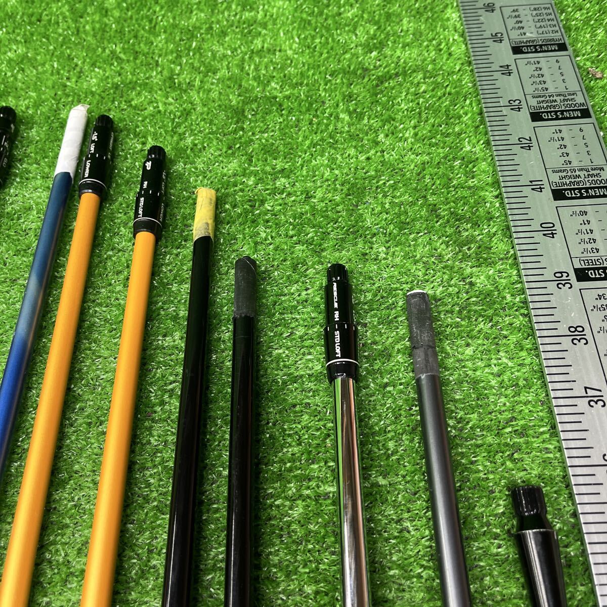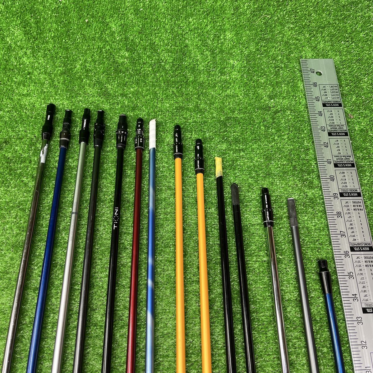 最近は出品が少なくなってしまい申し訳ありません。 メーカーもさまざまで、長さもドライバー用、フェアウェイウッド用なども入ります。インチメジャーを横に付けましたのでご参照下さい。 中には試打用のシャフトも混じります。 尚、フレックスは画像をご参照頂ければ思いますが、どうしても詳しい情報が聞きたい場合にはお問い合わせ下さい。 小さな傷などは画像では判断が出来ない場合があるかもしれませんが割れなどはチェックをしておりますのでよろしくお願いいたします。