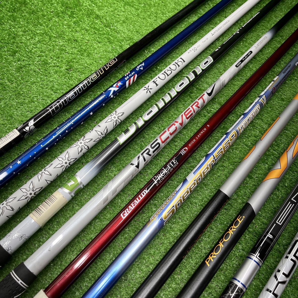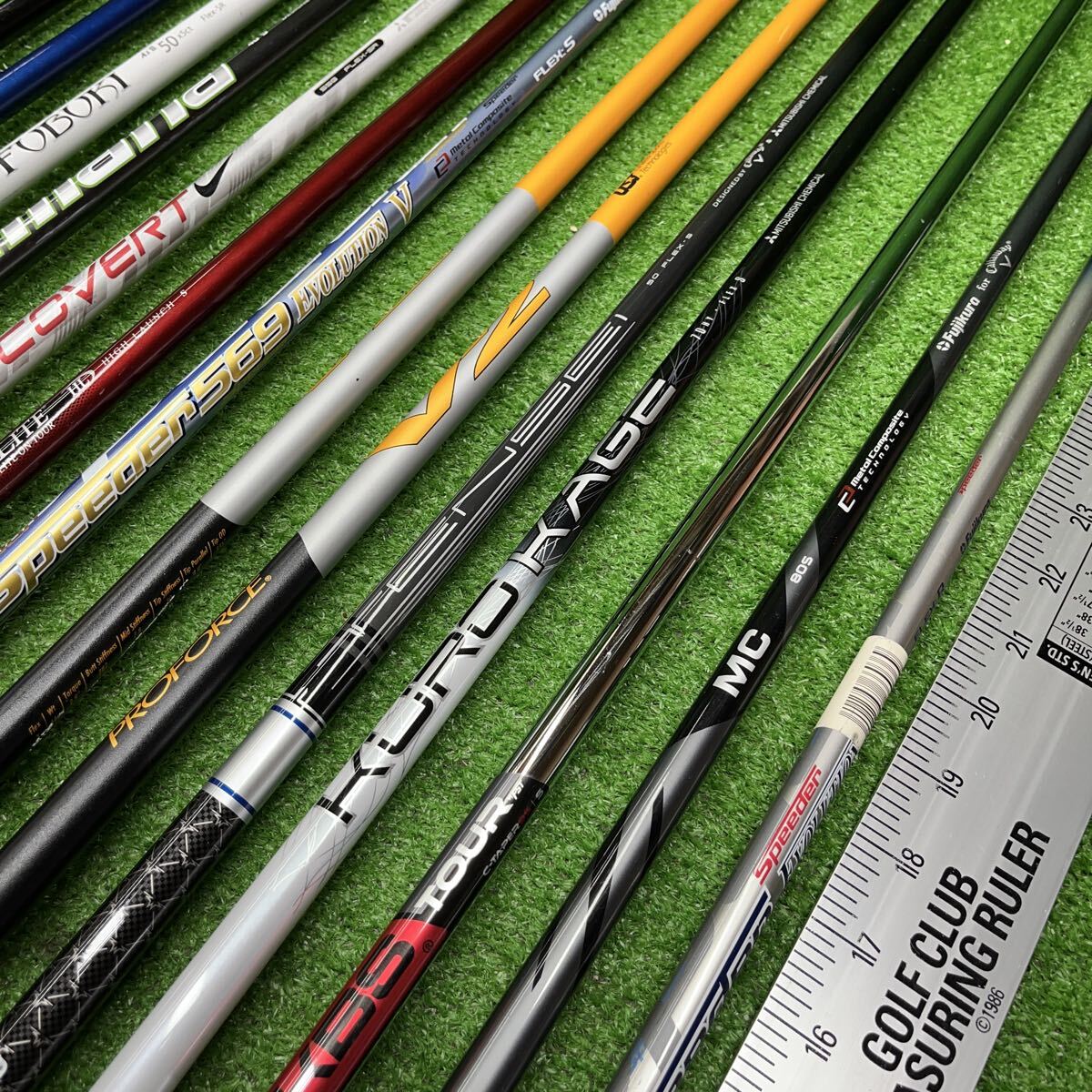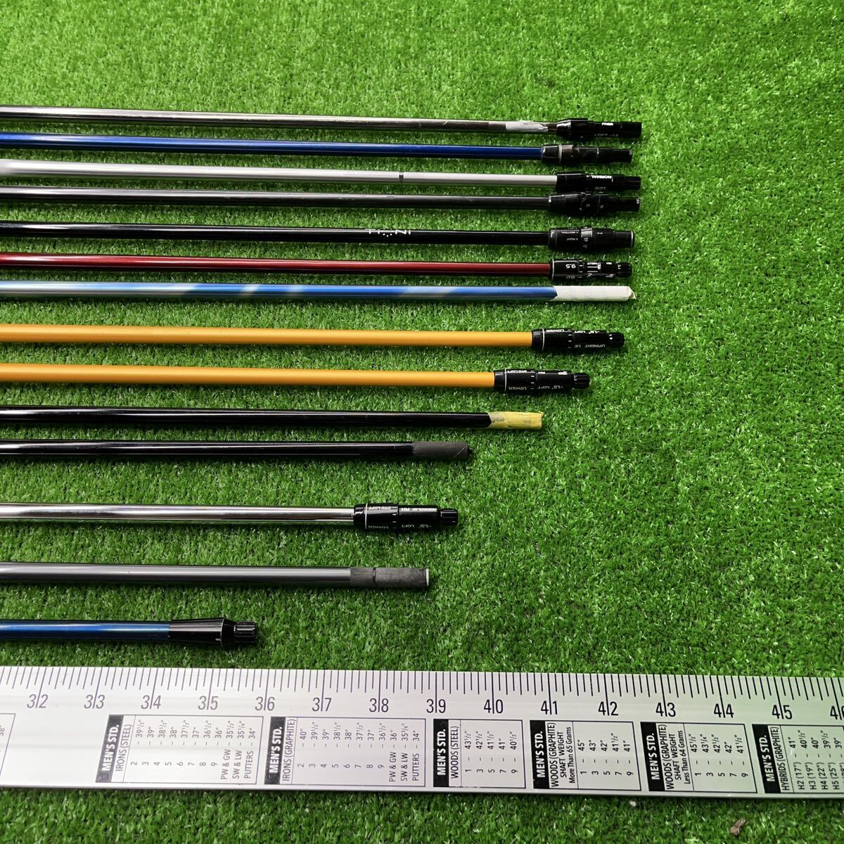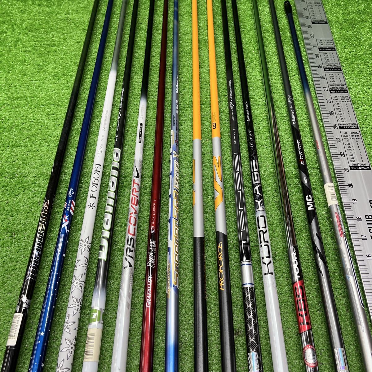 最近は出品が少なくなってしまい申し訳ありません。 メーカーもさまざまで、長さもドライバー用、フェアウェイウッド用なども入ります。インチメジャーを横に付けましたのでご参照下さい。 中には試打用のシャフトも混じります。 尚、フレックスは画像をご参照頂ければ思いますが、どうしても詳しい情報が聞きたい場合にはお問い合わせ下さい。 小さな傷などは画像では判断が出来ない場合があるかもしれませんが割れなどはチェックをしておりますのでよろしくお願いいたします。