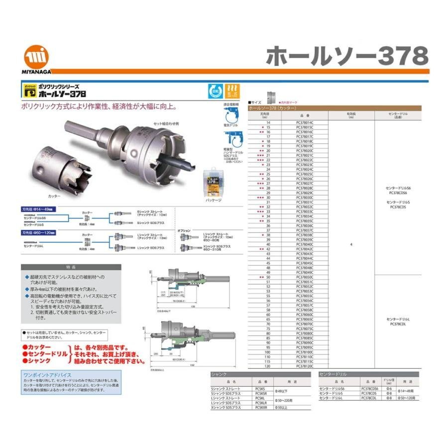 【オススメ】ミヤナガ ホールソー378/ポリセンタードリルL PC378CDL