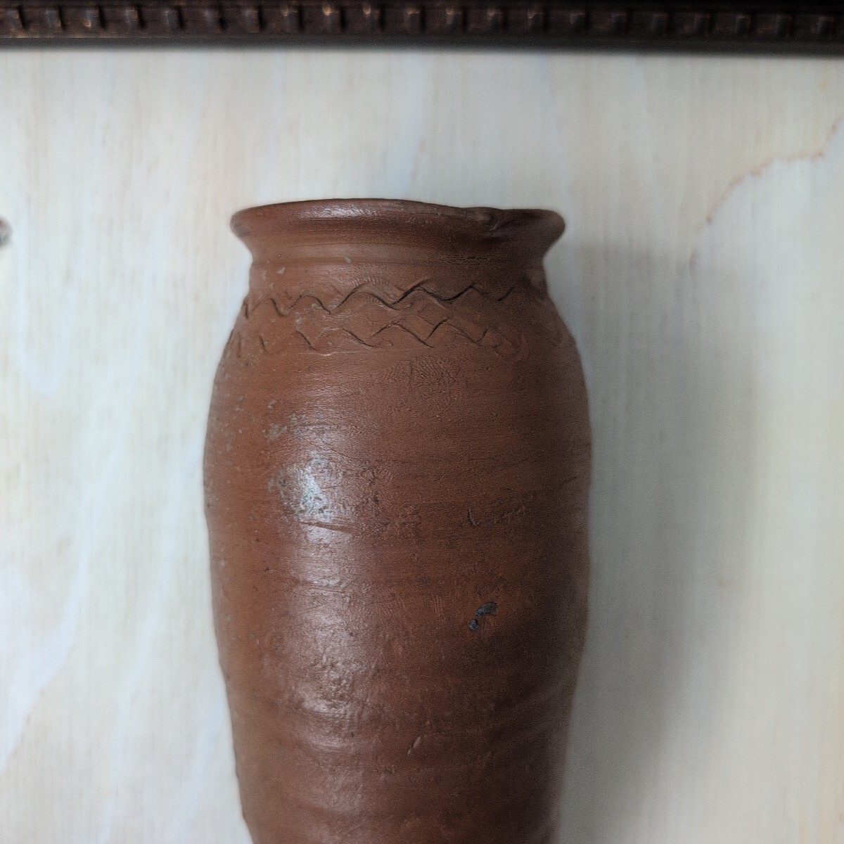 陶印の上辺りに凹みがありますが、製作時に付いた様に感じますので不良ではないと思います。