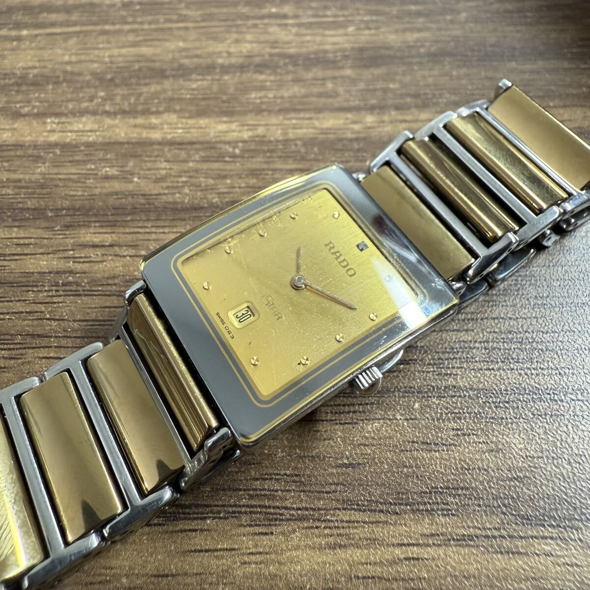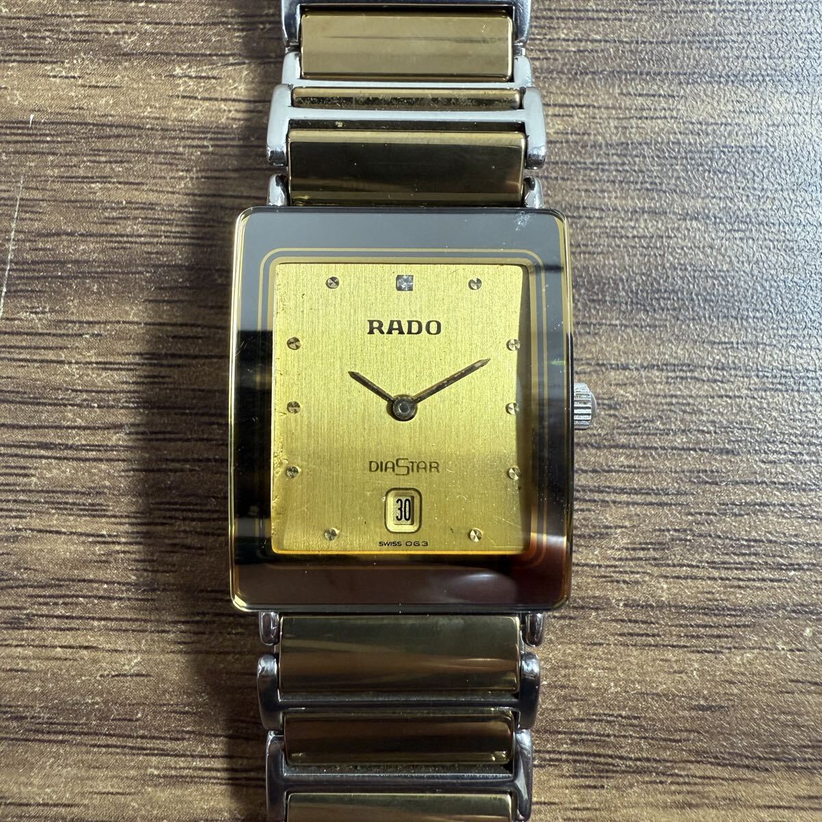 OYN189 RADO ラドー 腕時計 メンズ DIASTAR ダイヤスター 1Pダイヤ ゴールド文字盤 160.0318.3N デイト 現状品 余りコマ・ケース付