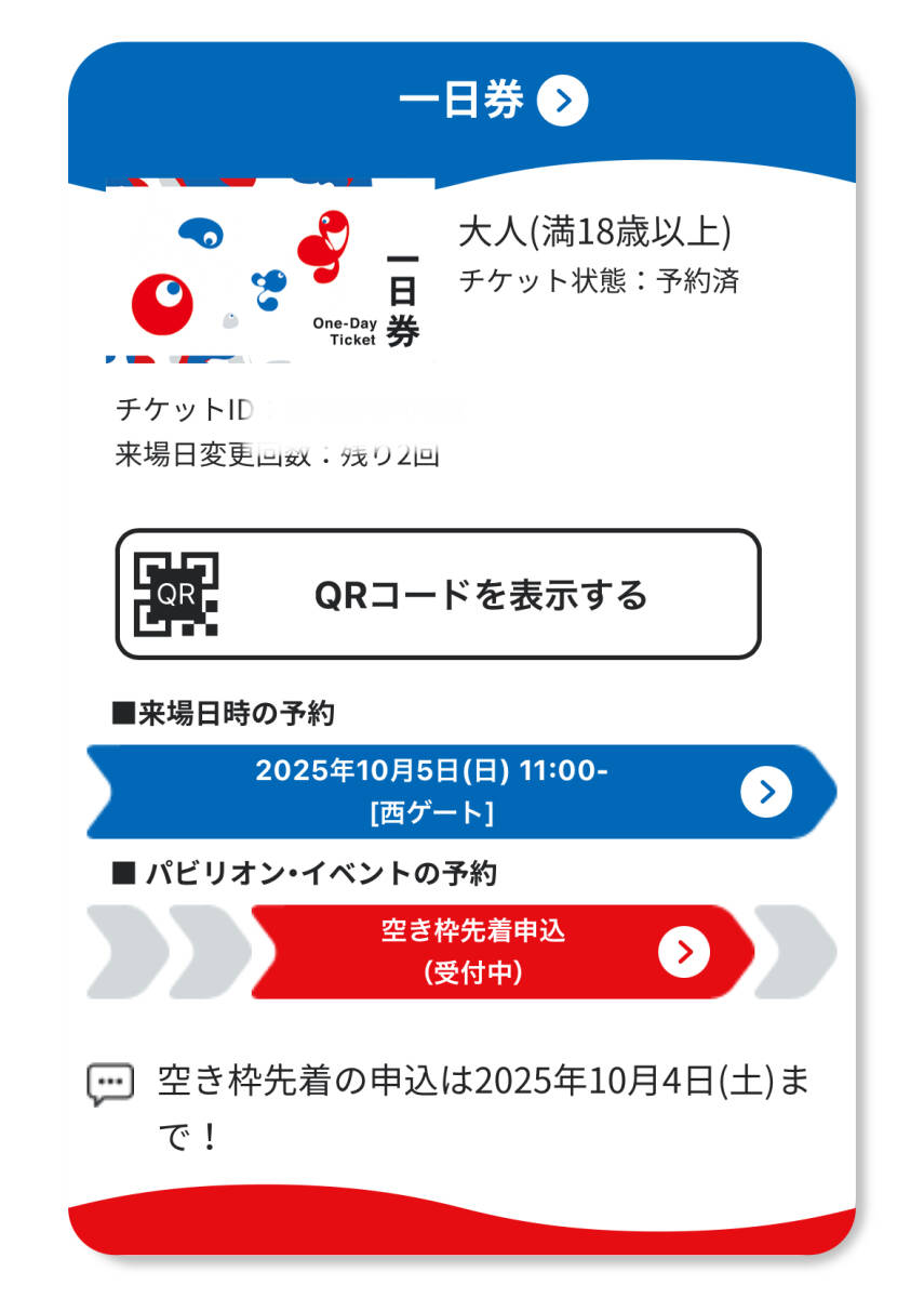 入札までに必ずご自身の万博IDを作成いただき電子チケット受け取り方法をご確認しておいてください。落札後、受取をスムーズに対応いただける方のみ入札をお願いいたします。