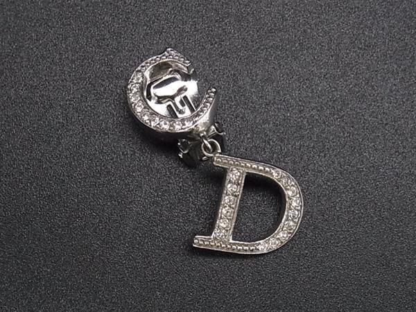 ■美品■ ChristianDior クリスチャンディオール ラインストーン クリップ式 片耳のみ イヤリング アクセサリー シルバー系 DJ4364
