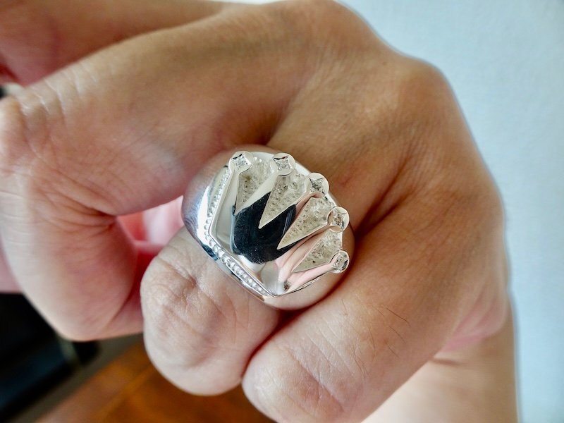 ごらん頂きありがとうございます。 オリジナルブランド 仁尾彫金『5つ星ダイヤ、クラウン甲丸リング』を出品致しますオリジナルのアクセサリーを自ら制作しています。今回、甲丸リングを制作致しました。そこに王冠モチーフを立体的に造形致しました。王冠の先に1.3mmのダイヤモンドを5石埋め込みました。使用ダイヤは上級クラスなので無色透明で照り輝きも最高です。大幅は約1.6cm強、最大厚みは約7mm弱で重量も約24gとシルバーをズシリ使用し、しっかりとした作りになっています。使い込むとリングはシルバーなので独特の味が出てきます。オリジナリティを追求しデザイン、制作を私自身で行っている為、今回、新品をご用意致します!! *こちらの作品につきまして10号から30号まで制作可能でございますm(_ _)m。 *こちらの作品につきまして制作に3週間程度かかります。m(_ _)m シルバー925 約24g (silver刻印あり) ご質問等ございましたらお気軽にaerothmith@mac.comへご連絡下さい。m(_ _)m 金プラチナにつきましてはフルオーダー制作も承っていますので、ご質問等ございましたらお気軽にaerothmith@mac.comへご連絡下さい。m(_ _)m その他も出品していますのでご覧下さい。m(_ _)m *インスタにて仁尾彫金で制作状況を掲載していますのでお気軽にご登録をお願い致します。(^-^) |