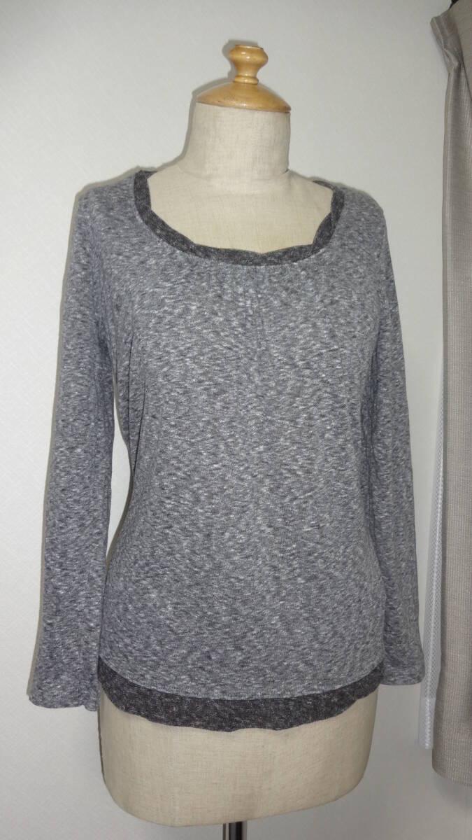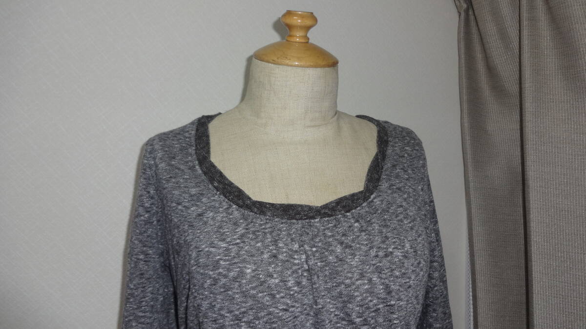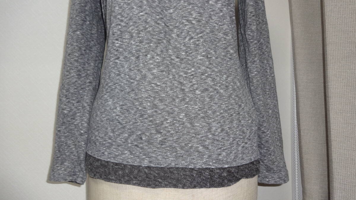 Shuca霜降グレー衿ぐりねじり加工切替配色カット